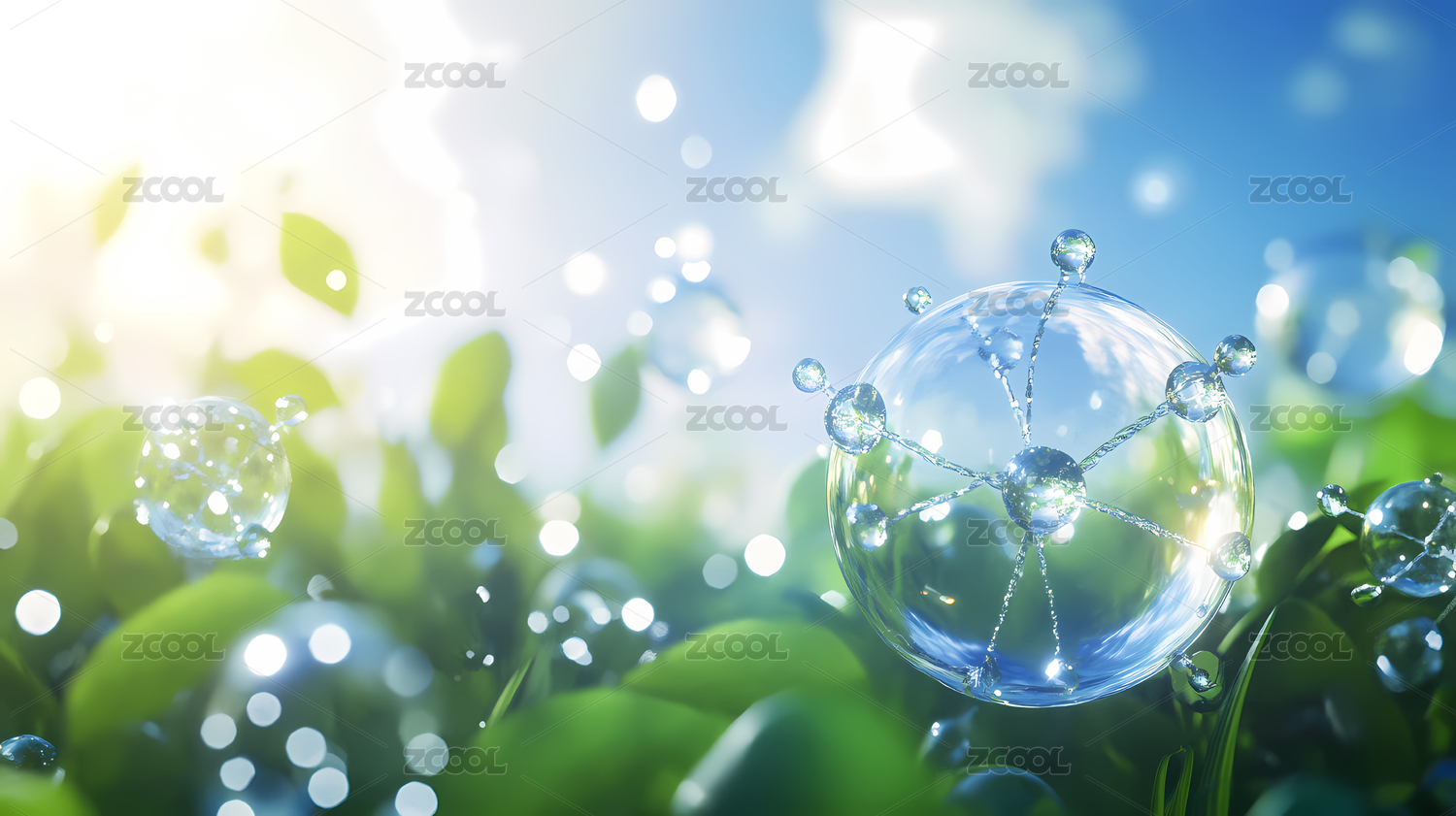 透明球體與植物背景