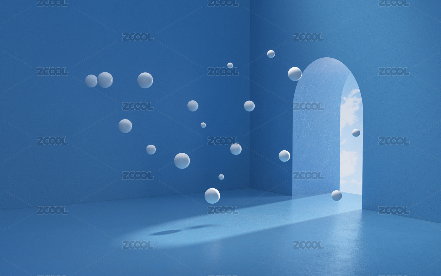 創(chuàng)意藍(lán)色空間與白色球體3D渲染