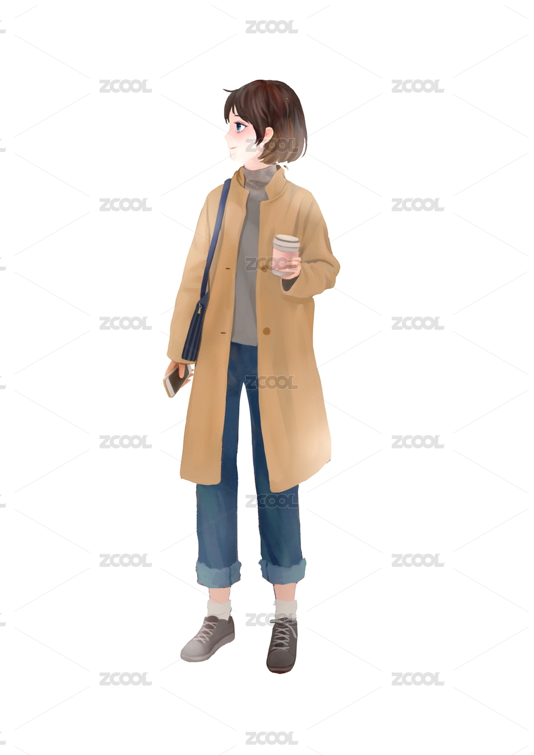 平面插畫設(shè)計(jì)女孩喝咖啡
