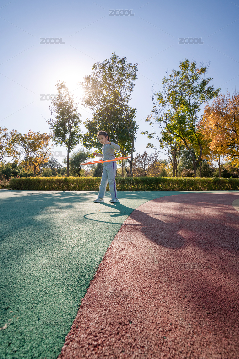 秋天在公園運(yùn)動(dòng)場(chǎng)玩呼啦圈的女孩