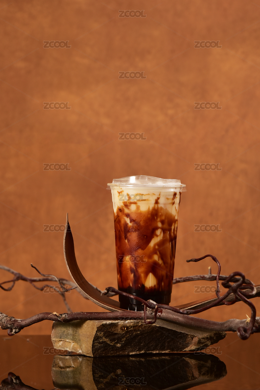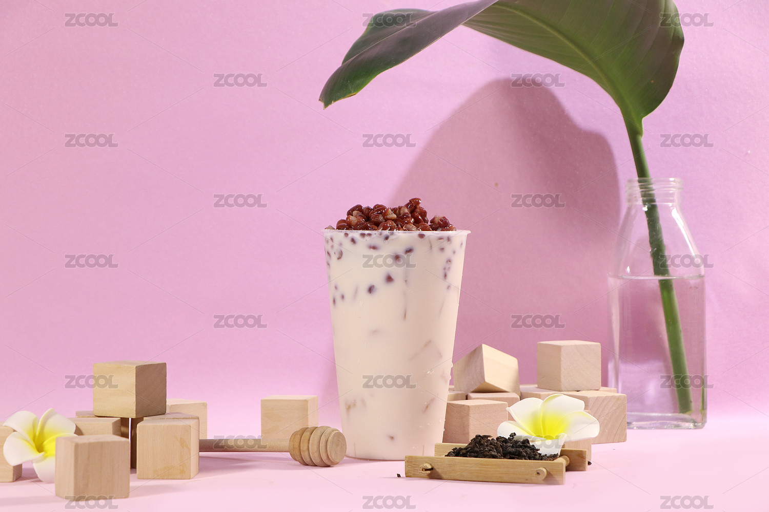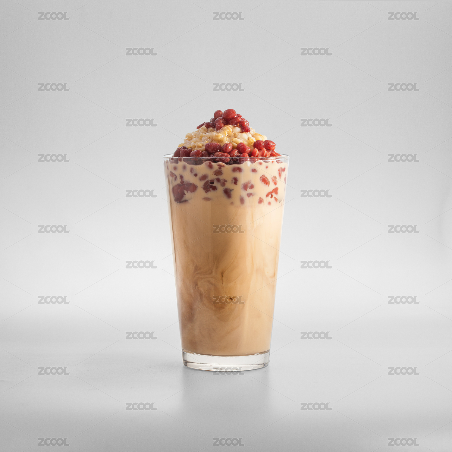 黑色背景下的鮮榨冰凍茶飲料,鮮榨草莓奶茶