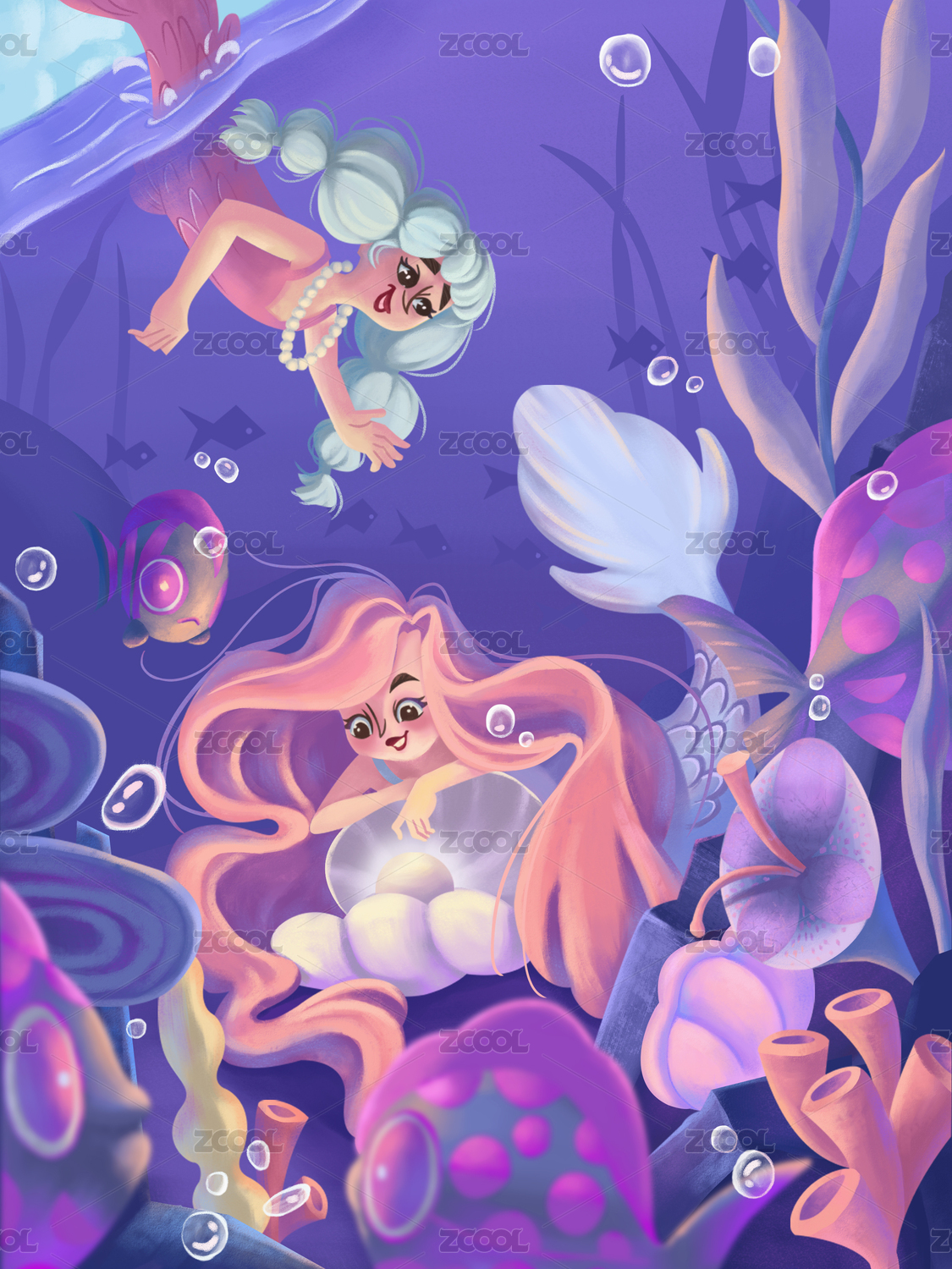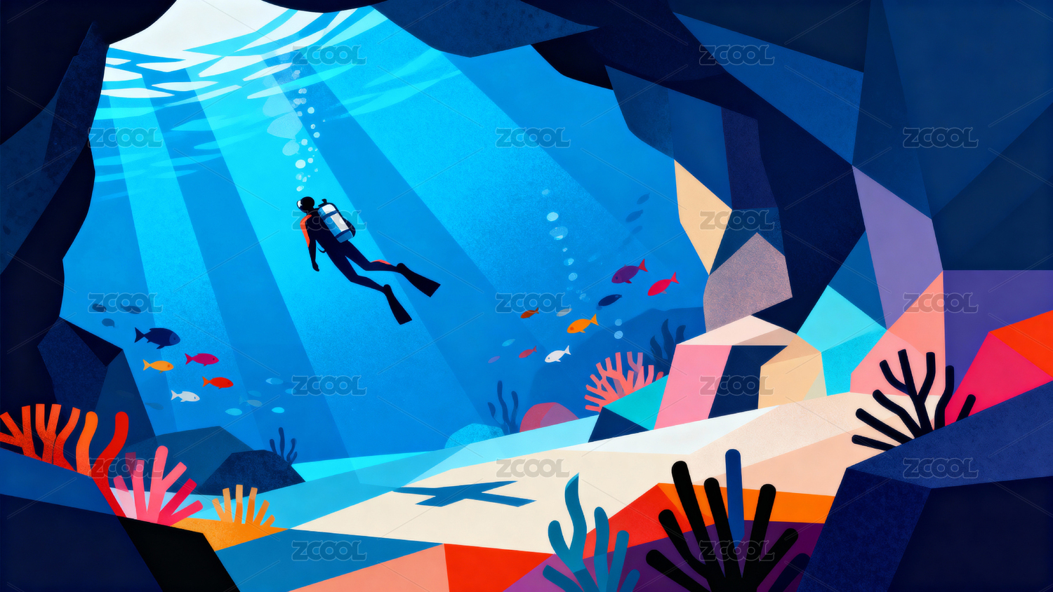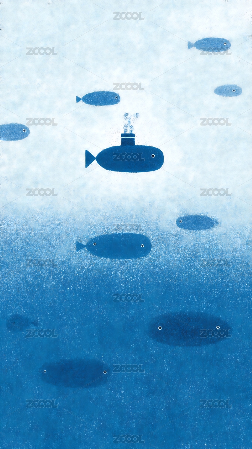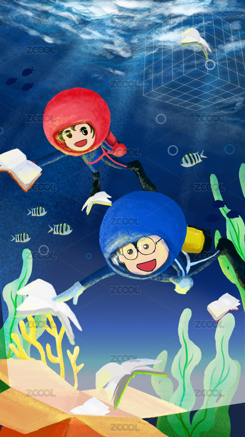 神秘的海底機器場景設(shè)定,海底世界插畫。