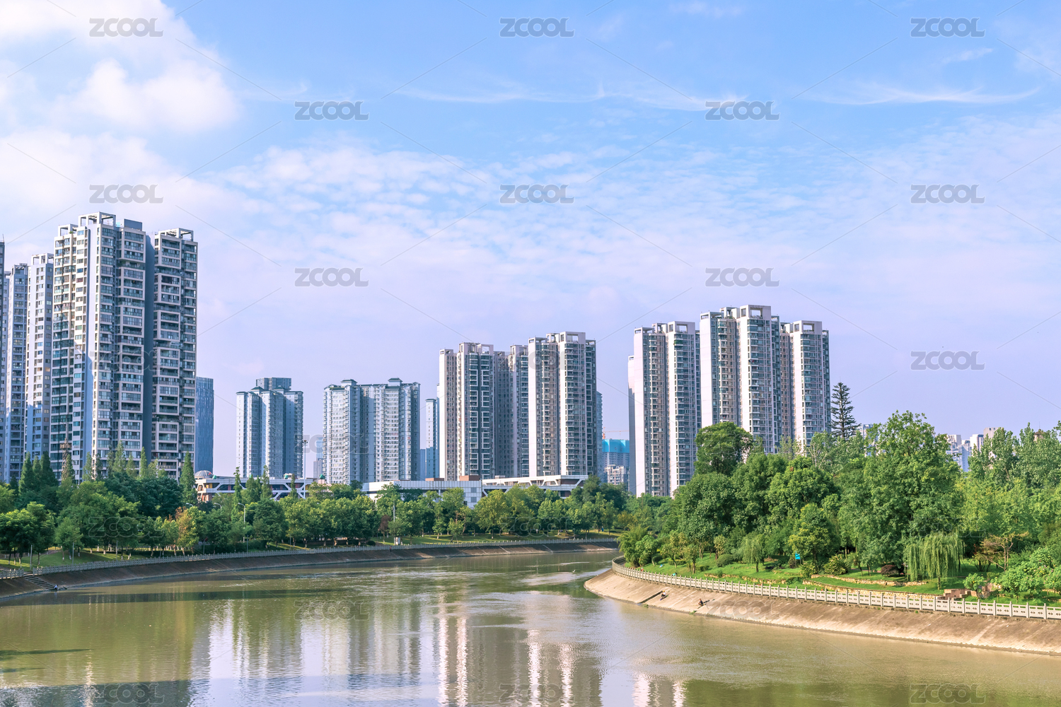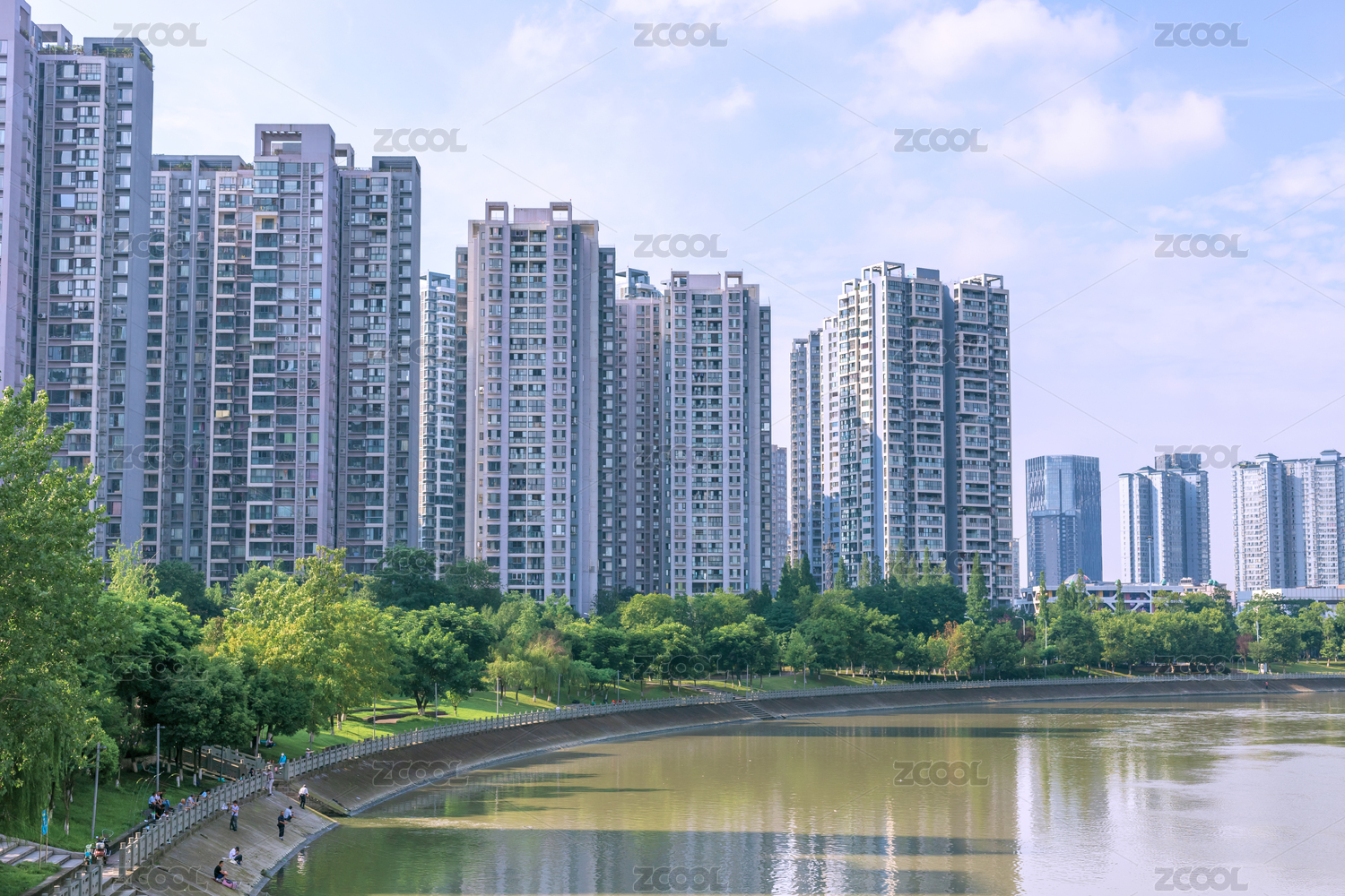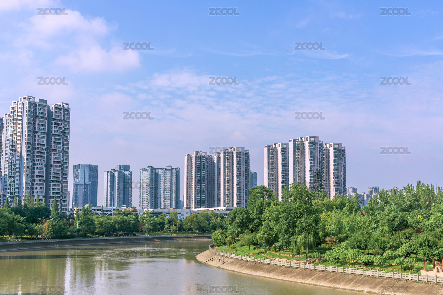 中國四川省成都市武侯區(qū)錦江周邊的高層住房建筑