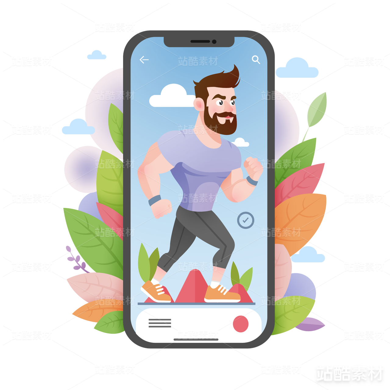 健身跑步矢量扁平歐美風(fēng)插畫元素
