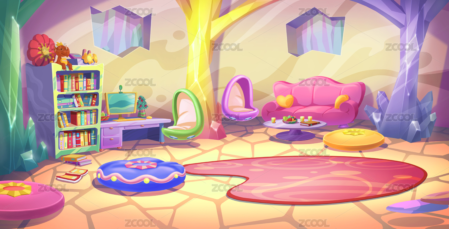 歐美風(fēng)寫實(shí)二維動(dòng)畫卡通客廳場(chǎng)景