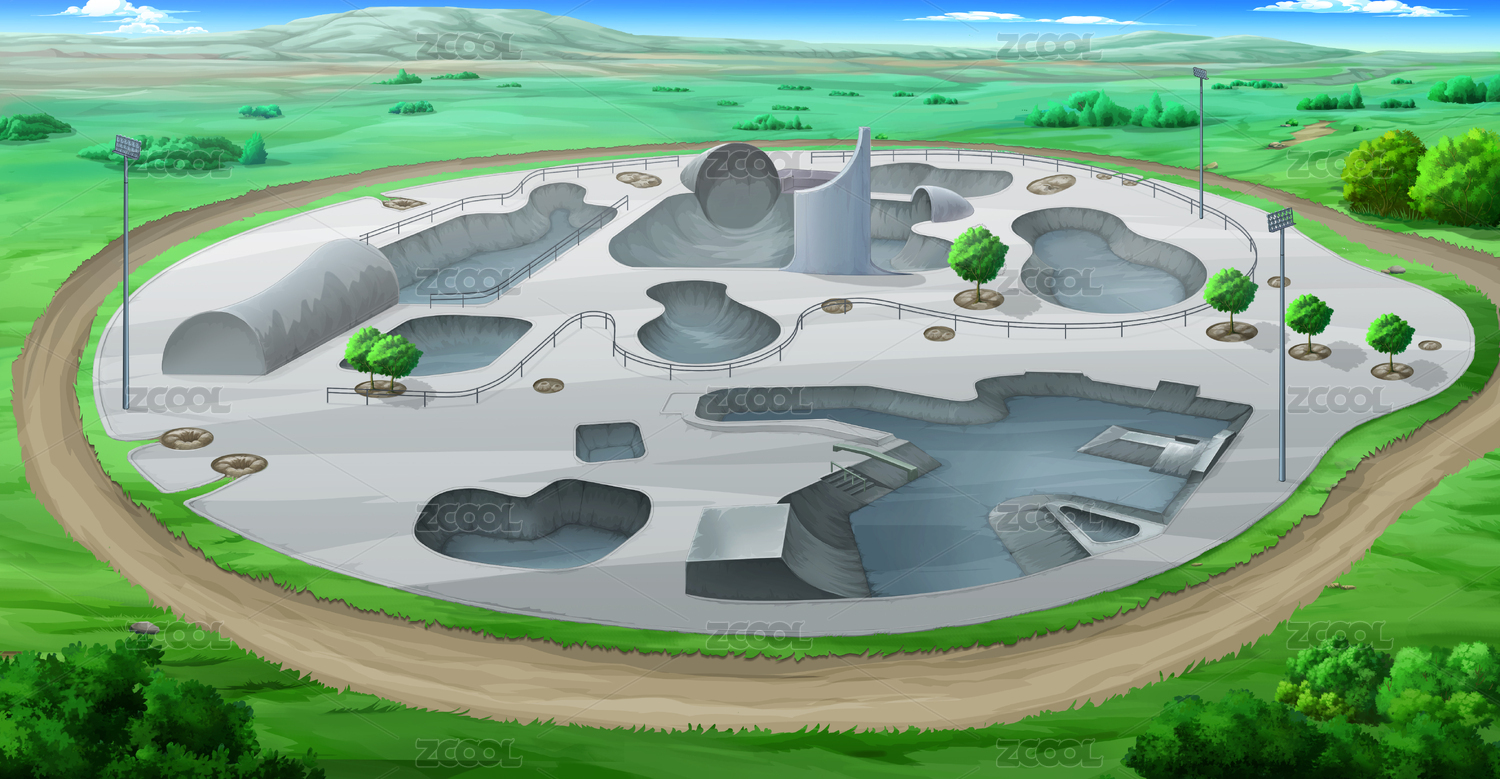 歐美風(fēng)寫實(shí)二維動(dòng)畫場(chǎng)景輪滑場(chǎng)