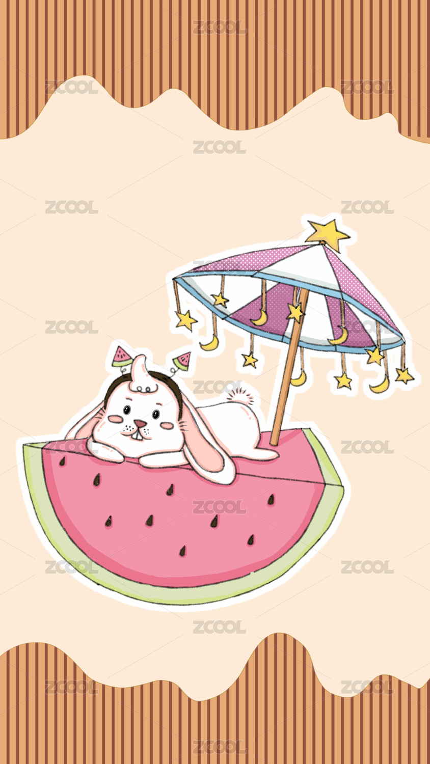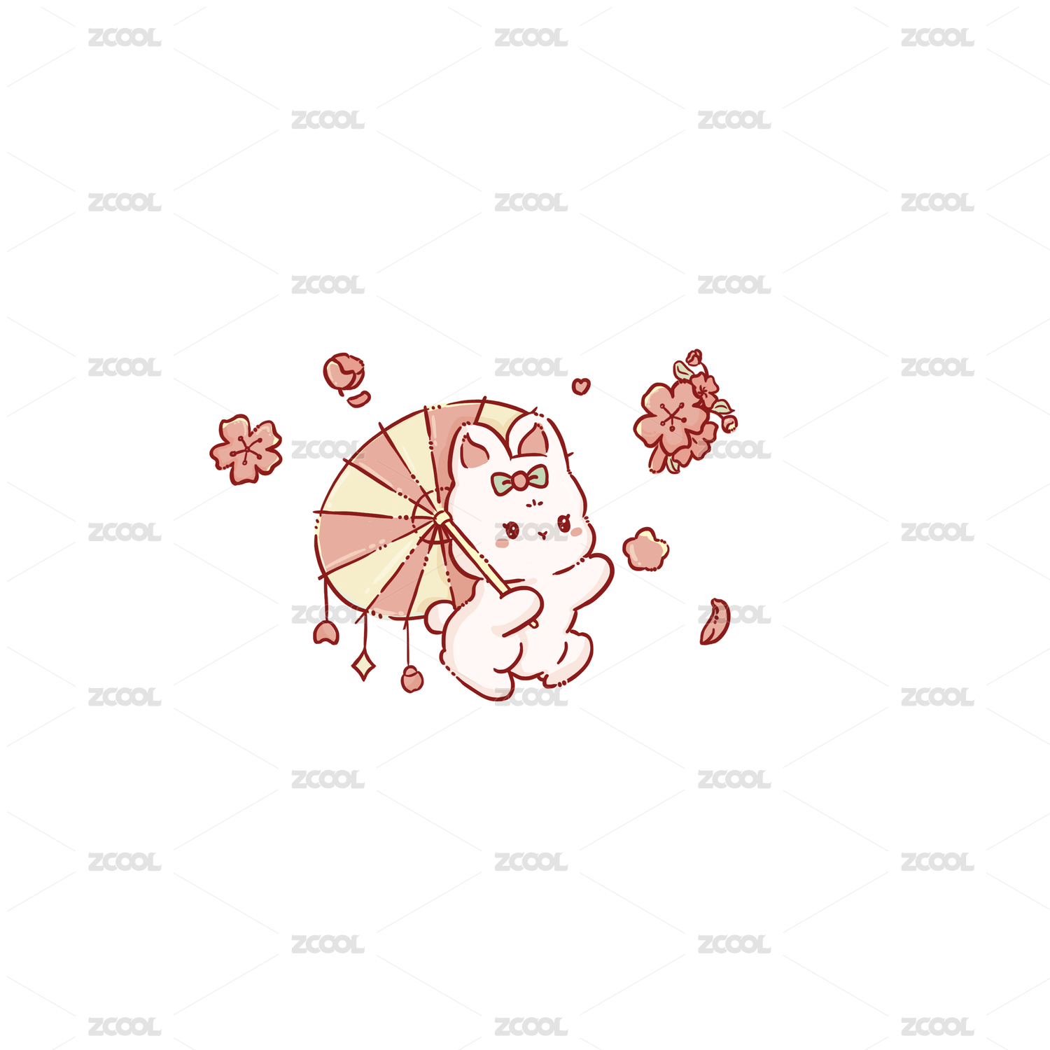 卡通小兔子在雨中用荷葉打傘兒童繪本插畫植