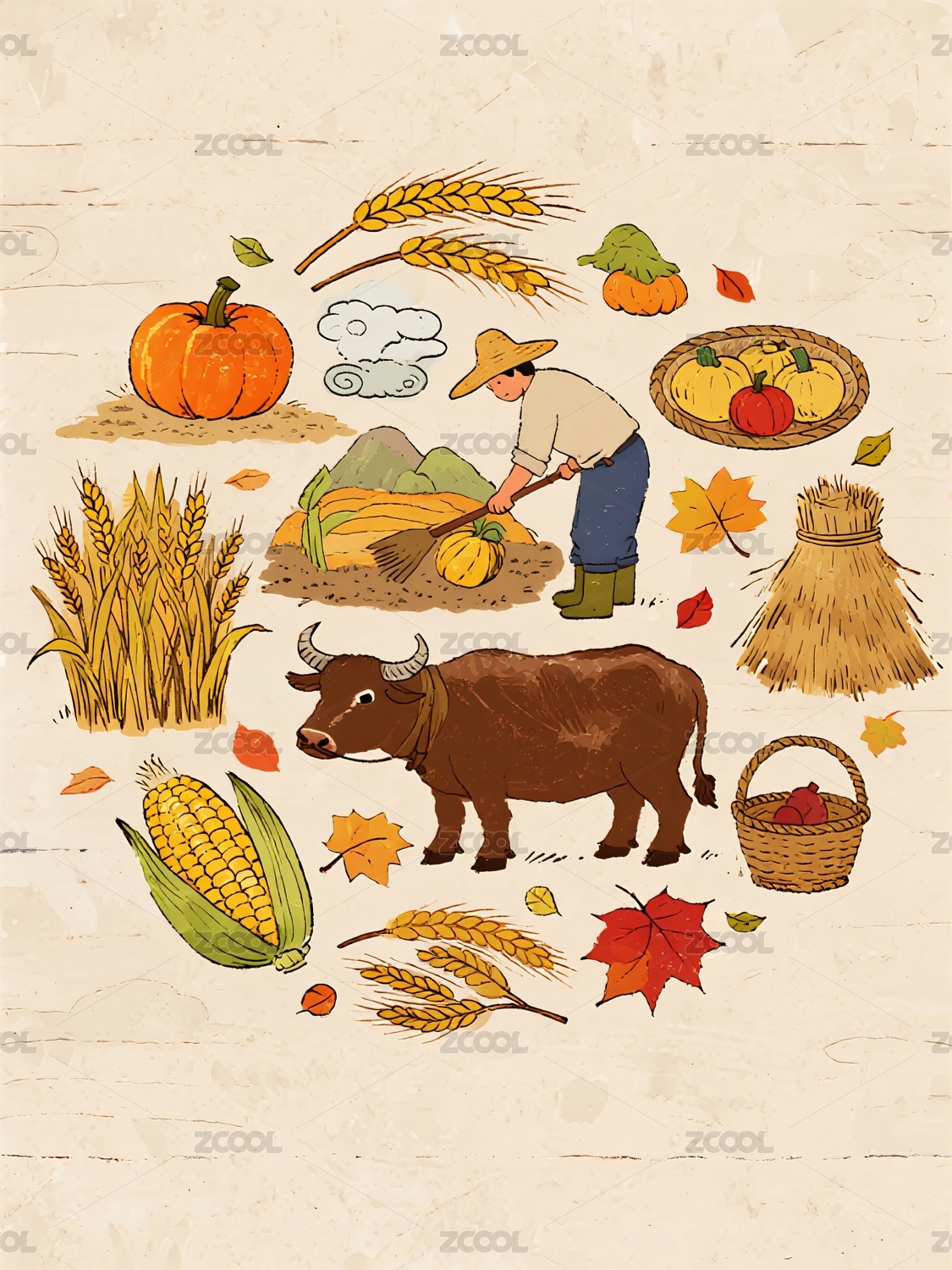 秋季豐收景象農(nóng)民收割農(nóng)作物場(chǎng)景