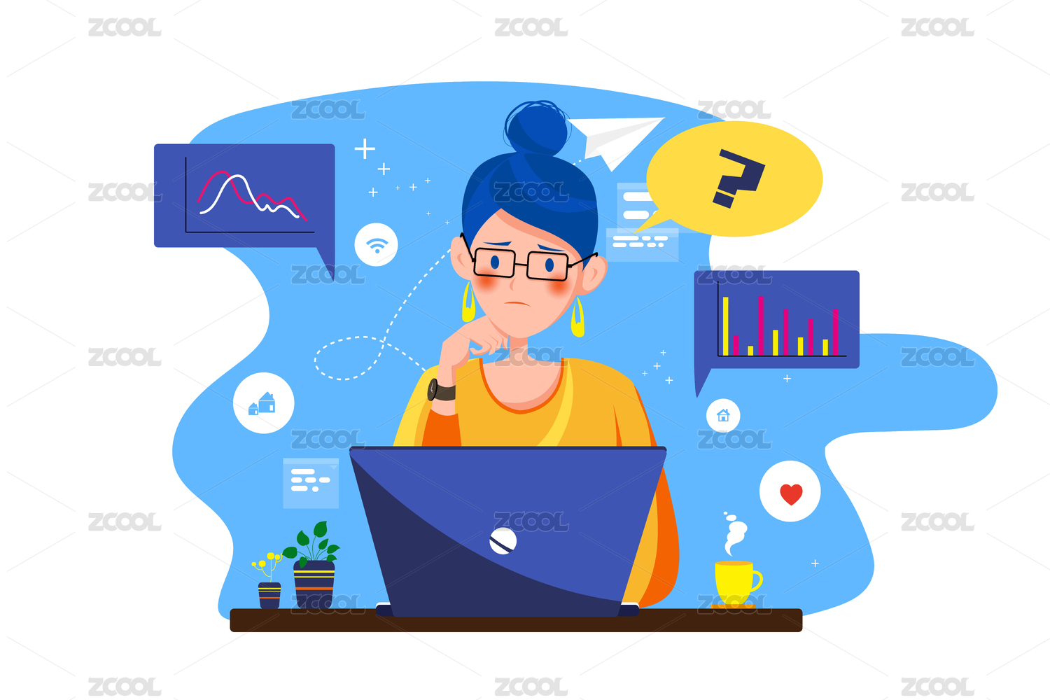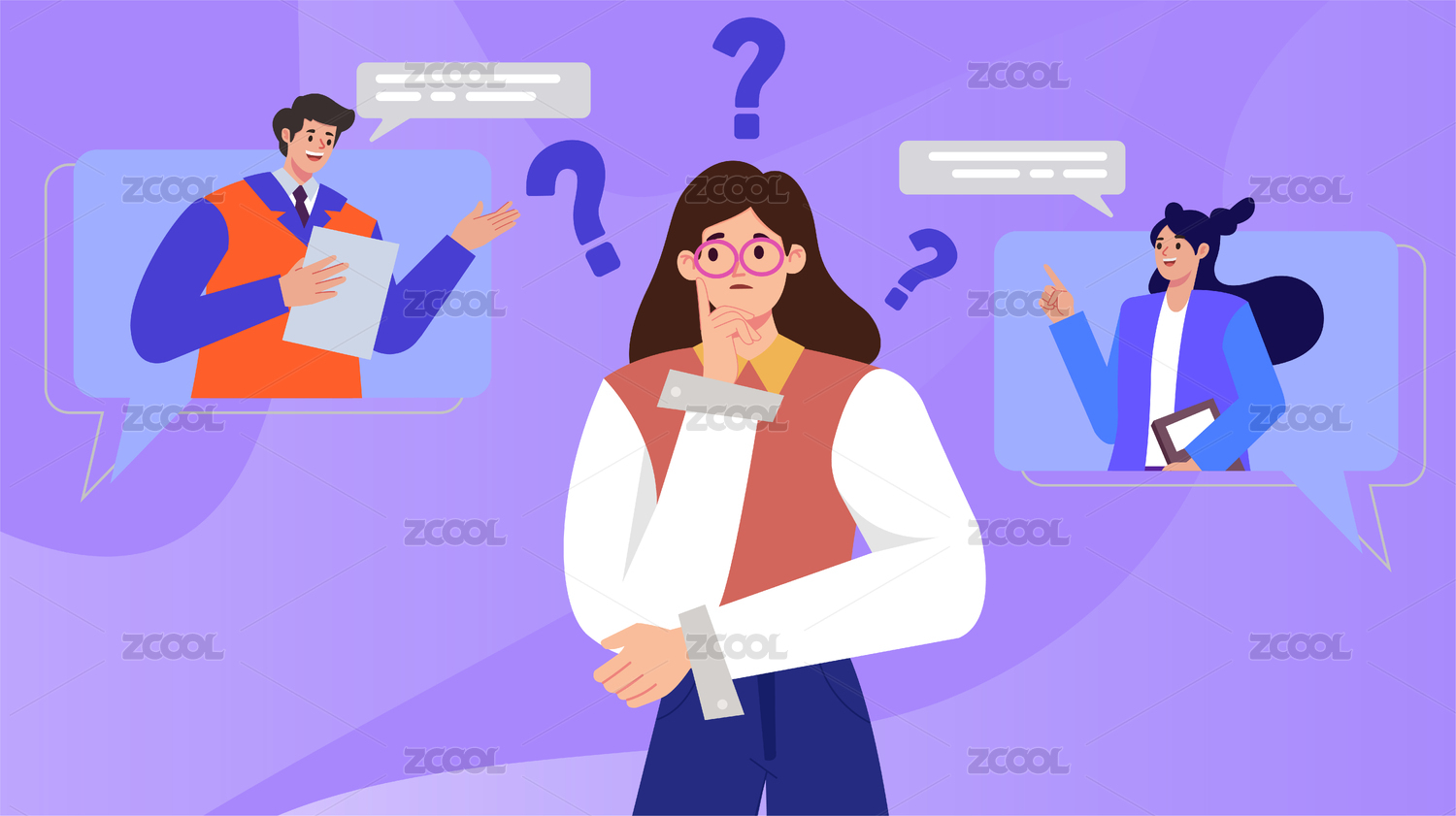在線提出問(wèn)題的疑問(wèn)困惑的女生插畫