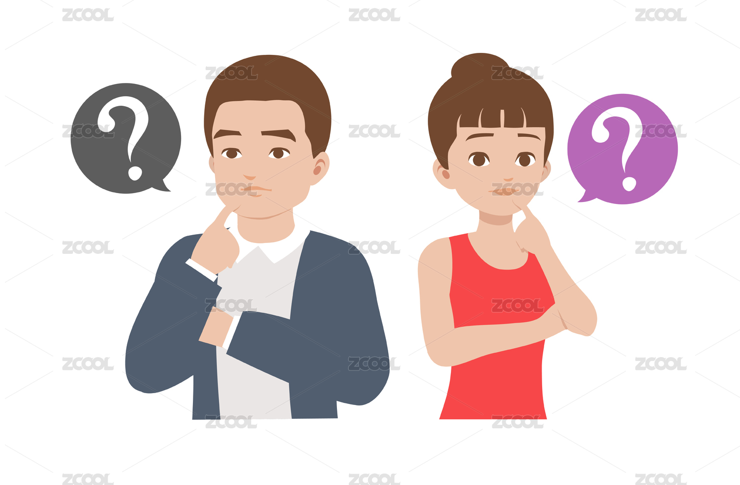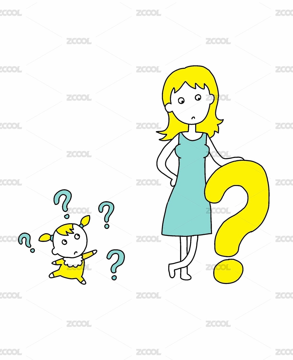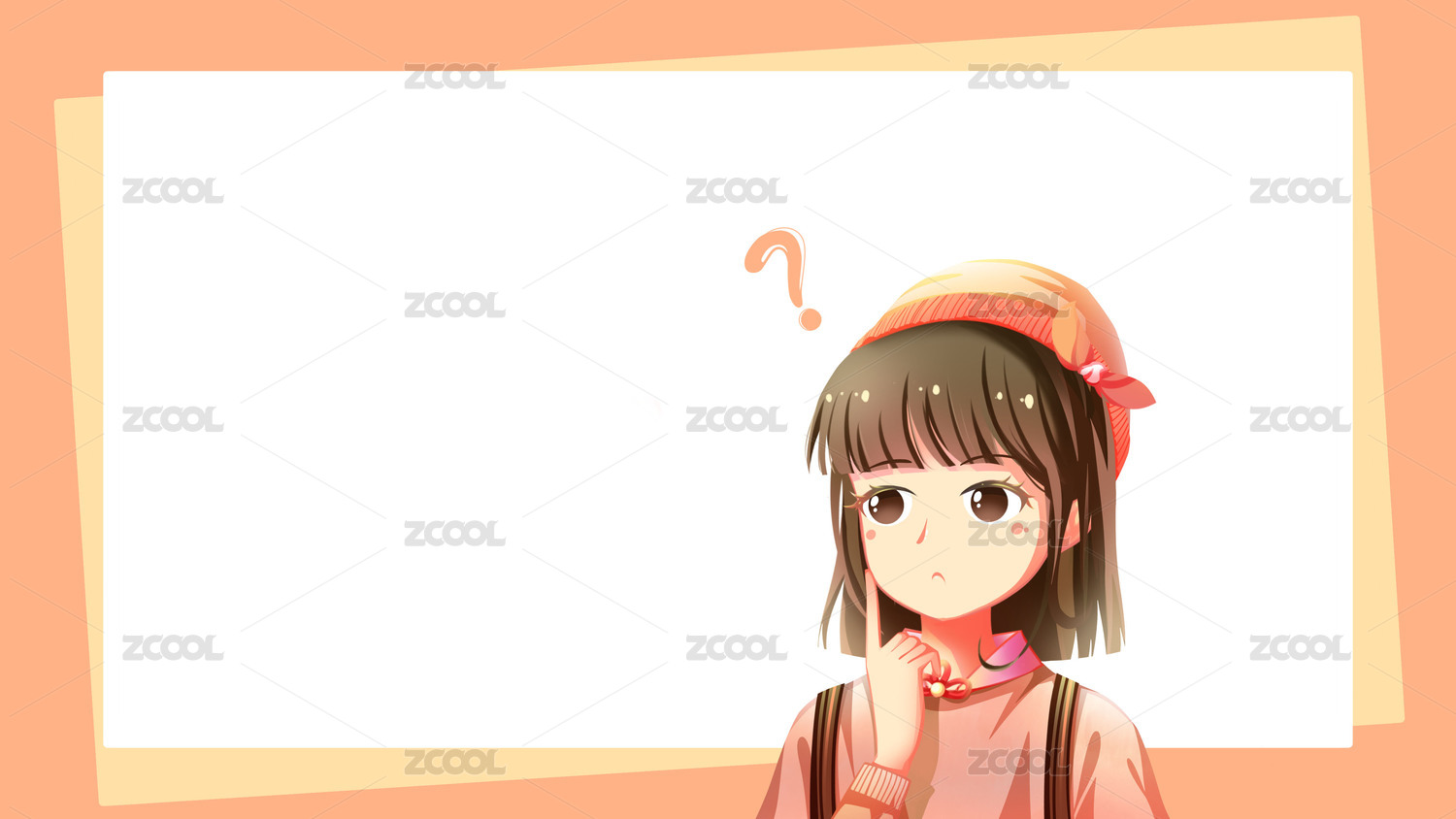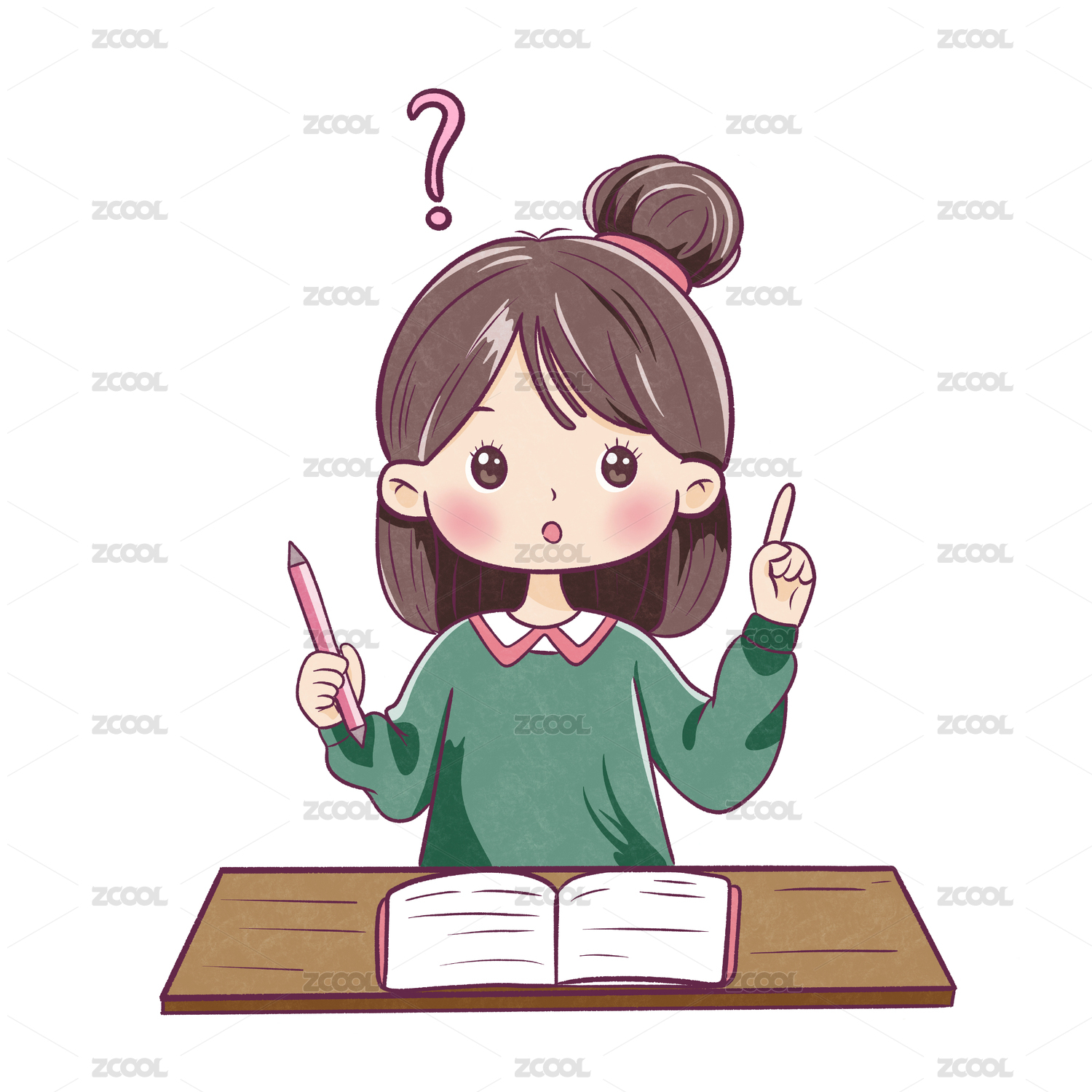 卡通可愛女孩的疑問(wèn)手繪人物素材