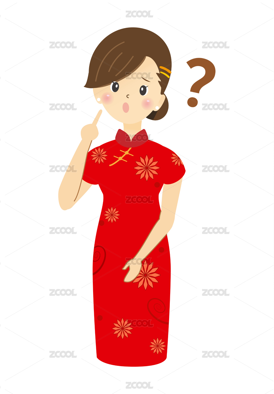 旗袍女人 疑問(wèn)動(dòng)作 卡通畫