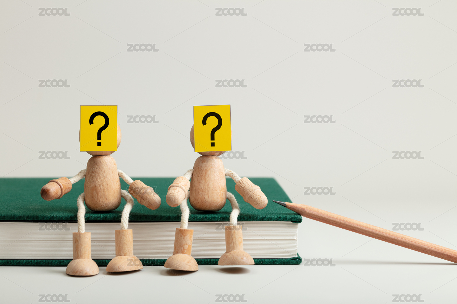 微縮創(chuàng)意坐在書上一臉疑問(wèn)的木頭人