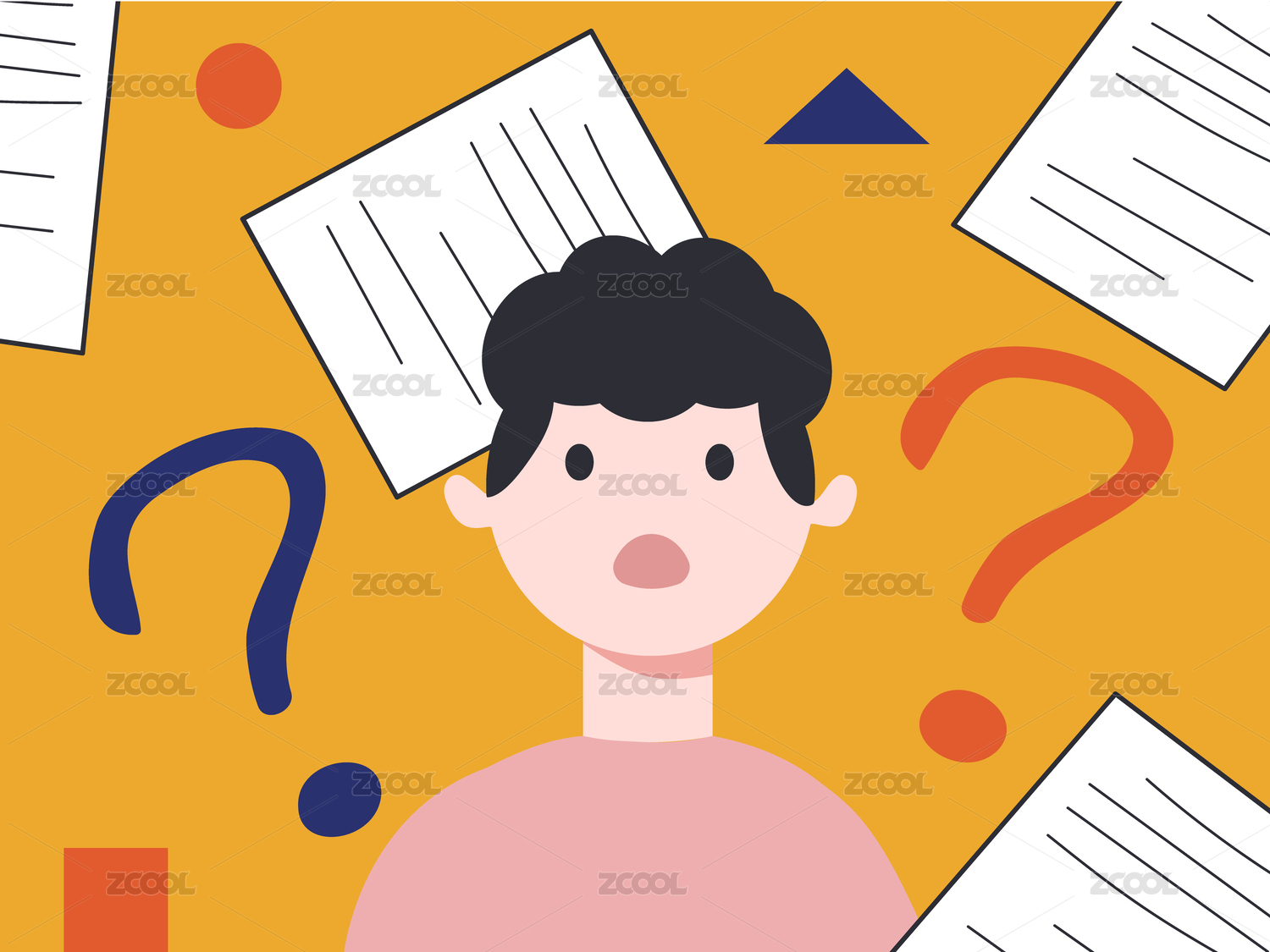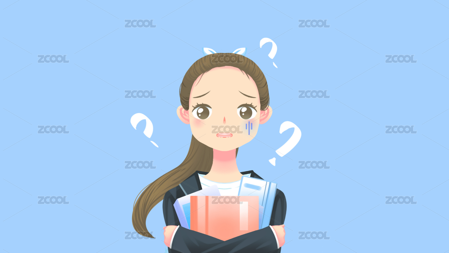 捧著書籍文件資料的年輕女孩滿頭問(wèn)號(hào)
