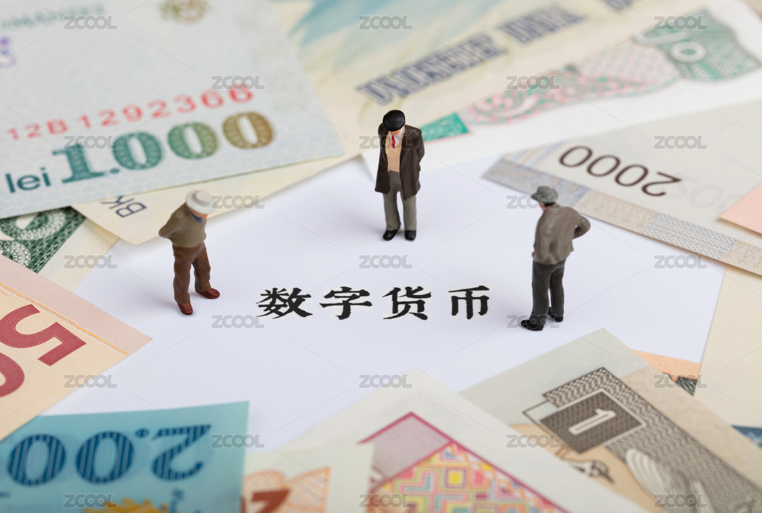 人群看著紙幣包圍著的數(shù)字貨幣