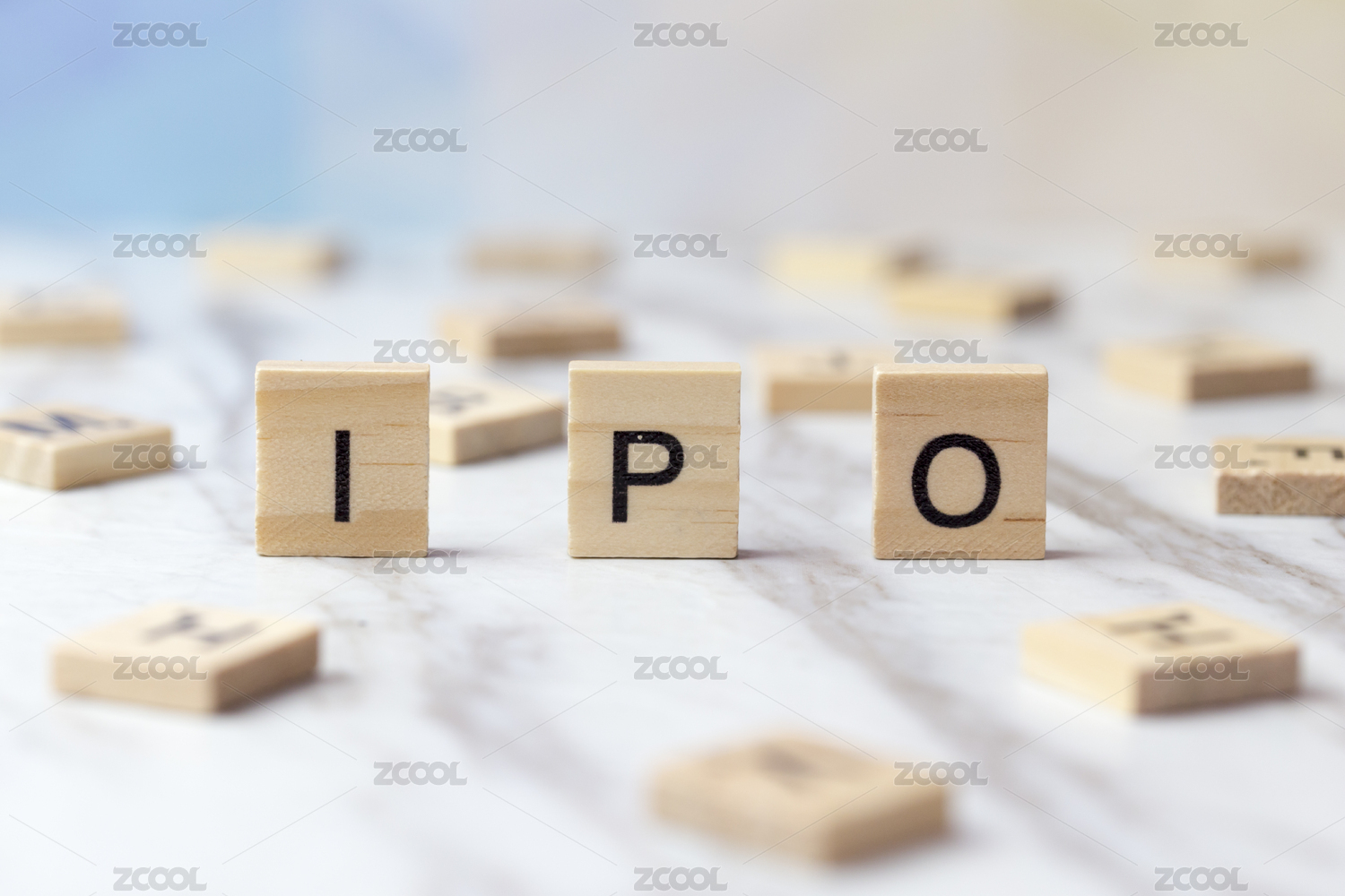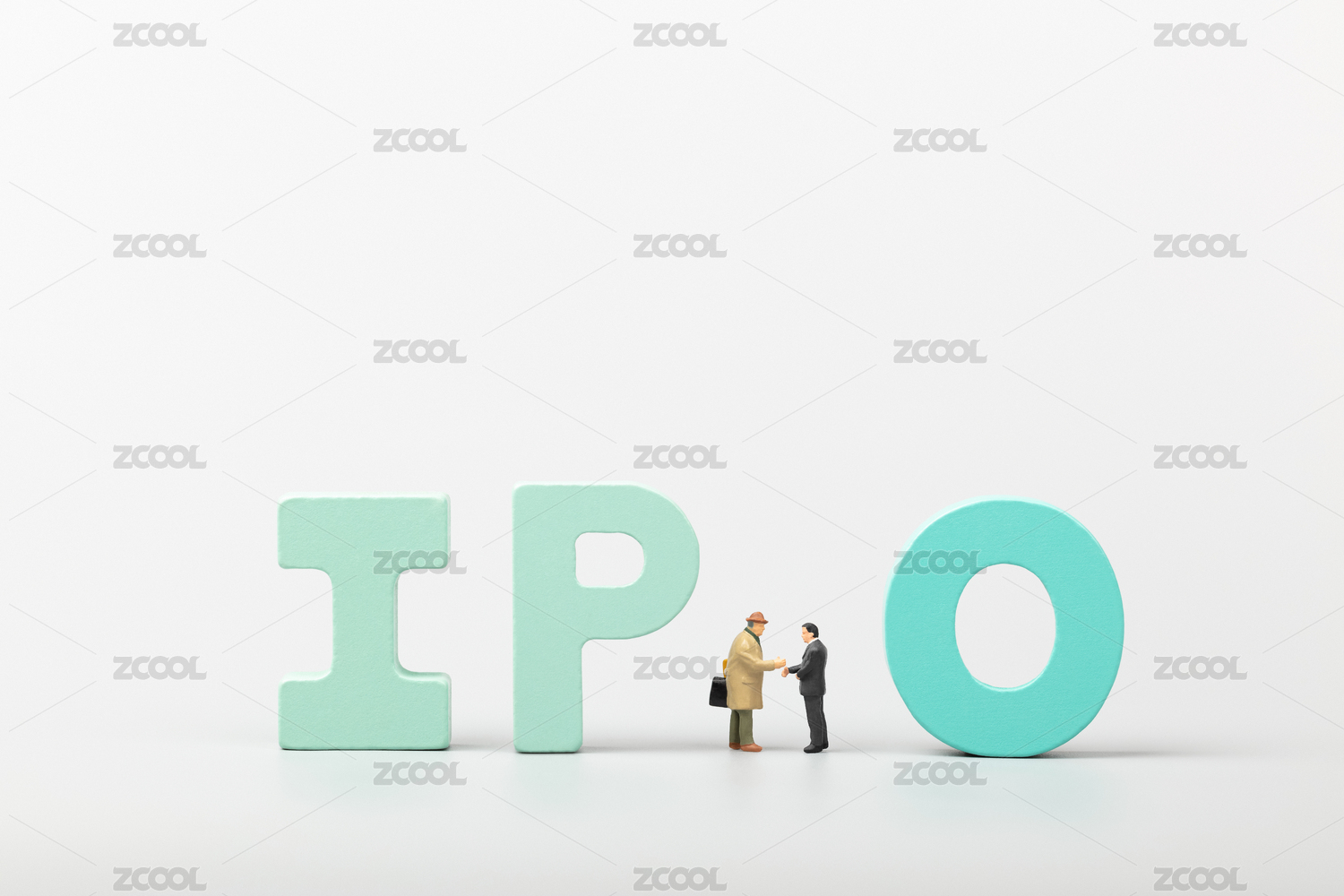 IPO彩色積木下兩個(gè)人握手股票發(fā)行