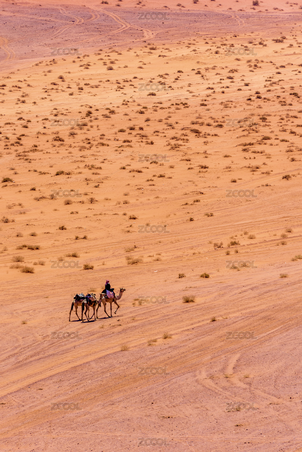 中東約旦瓦迪拉姆月亮谷沙漠中行走的駱駝