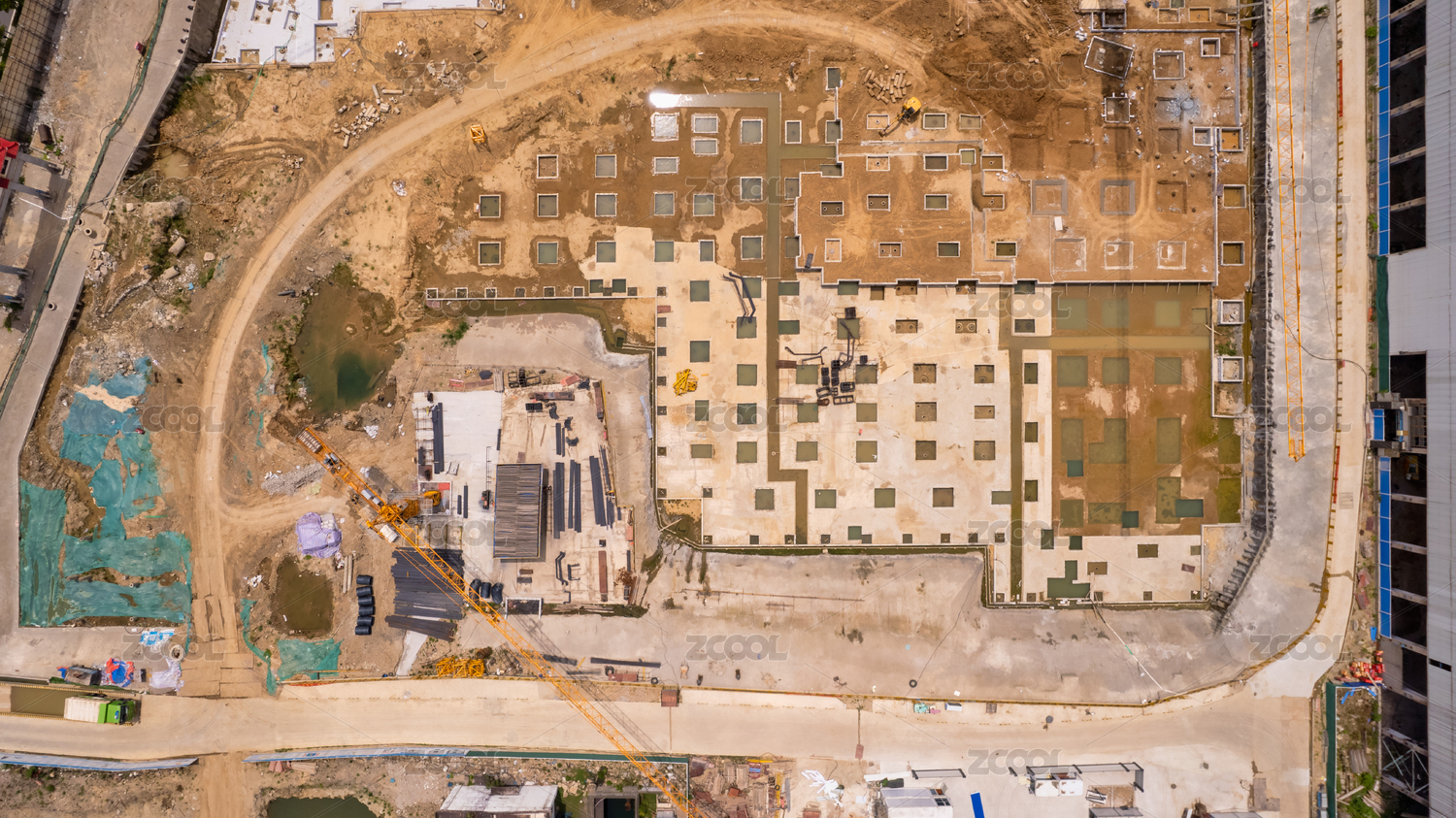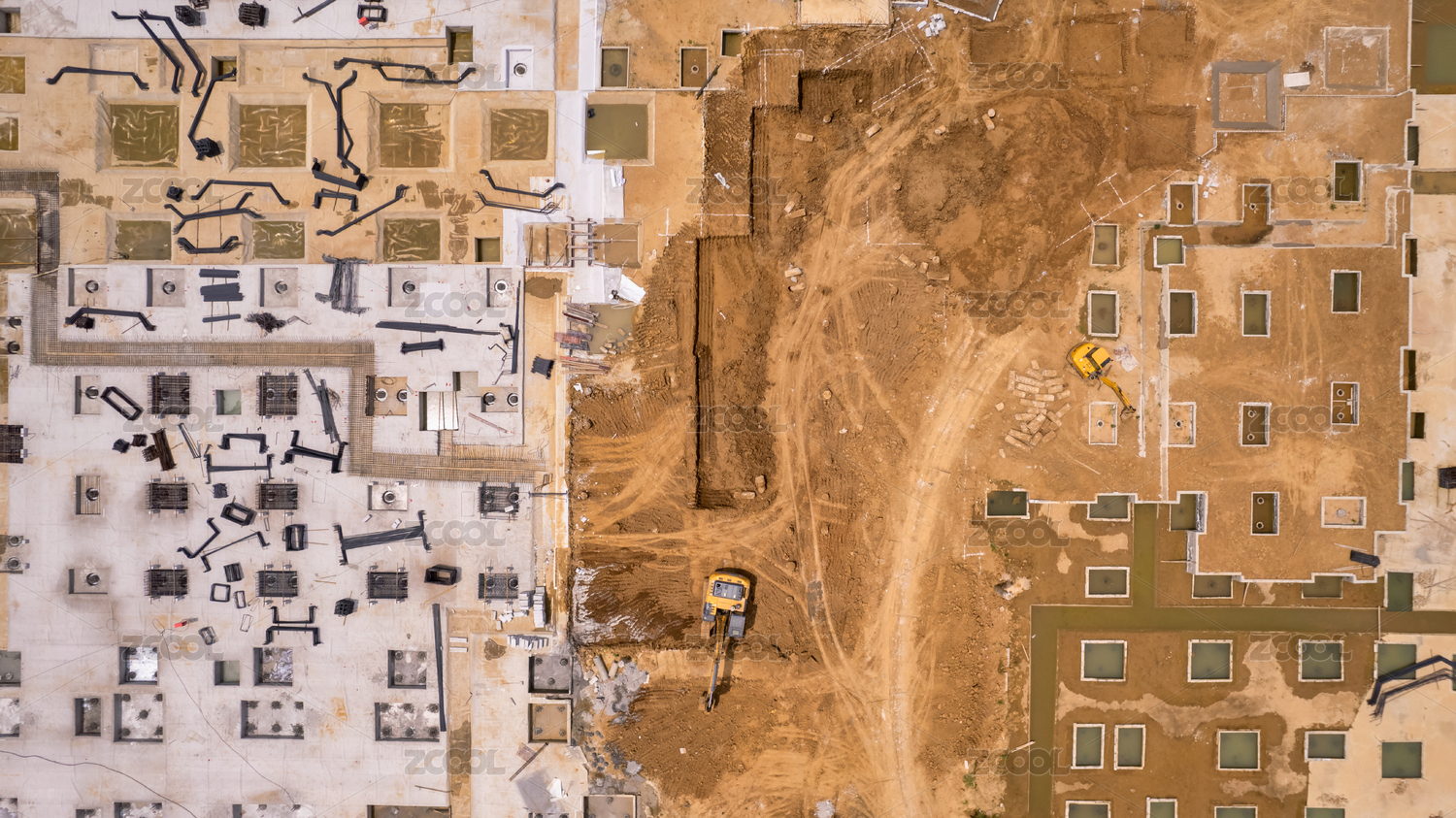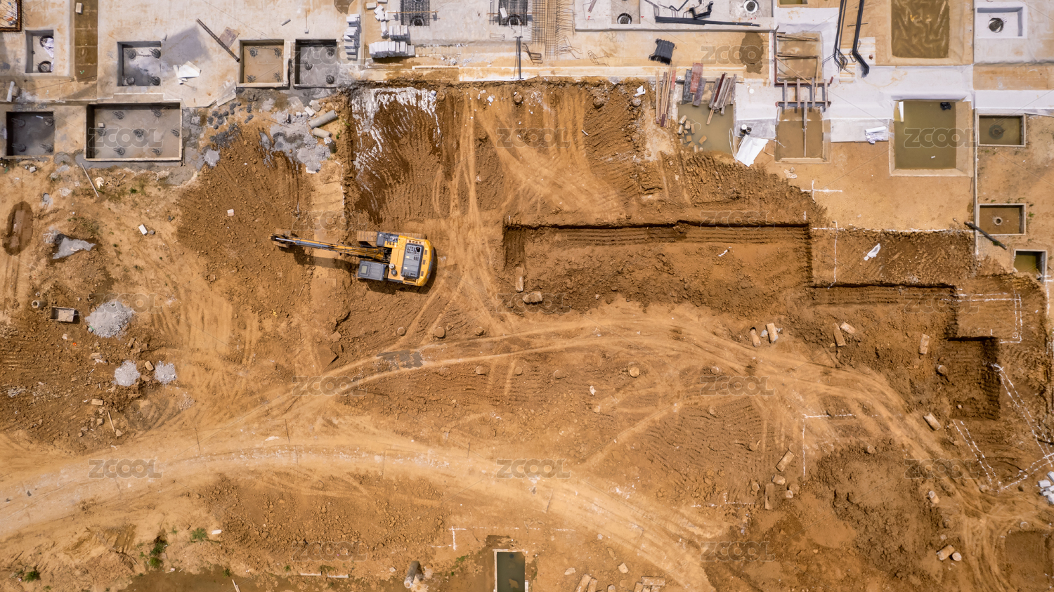 房地產(chǎn)基礎(chǔ)施工現(xiàn)場(chǎng)航拍