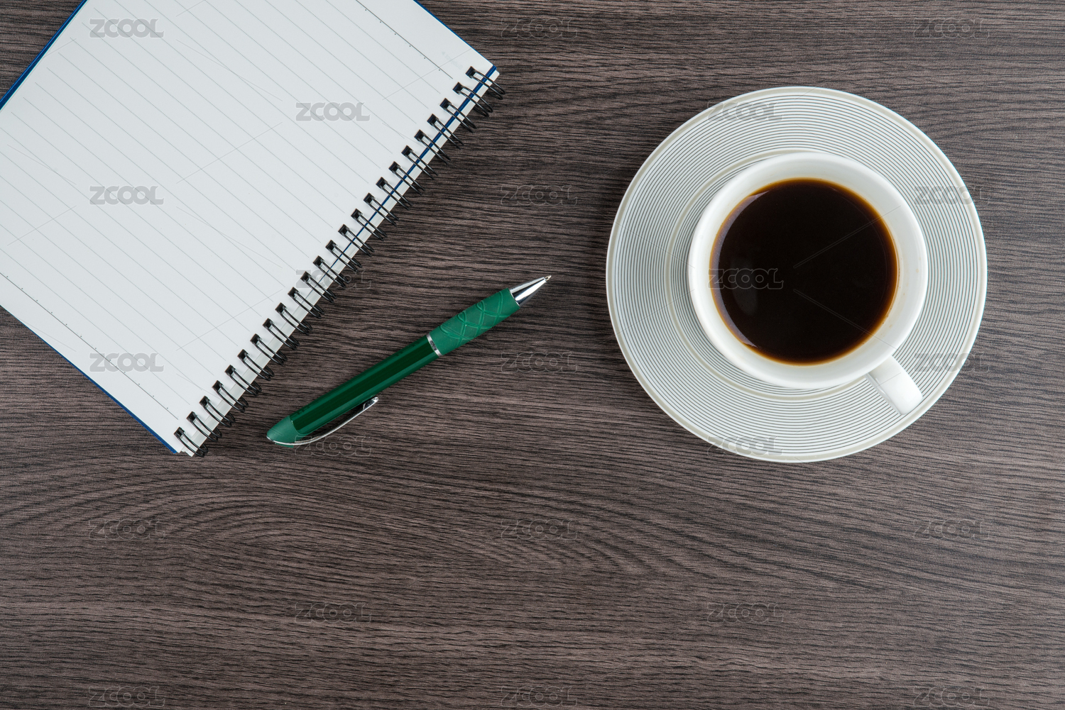 筆記本用鋼筆和一杯咖啡,規(guī)劃便條紙