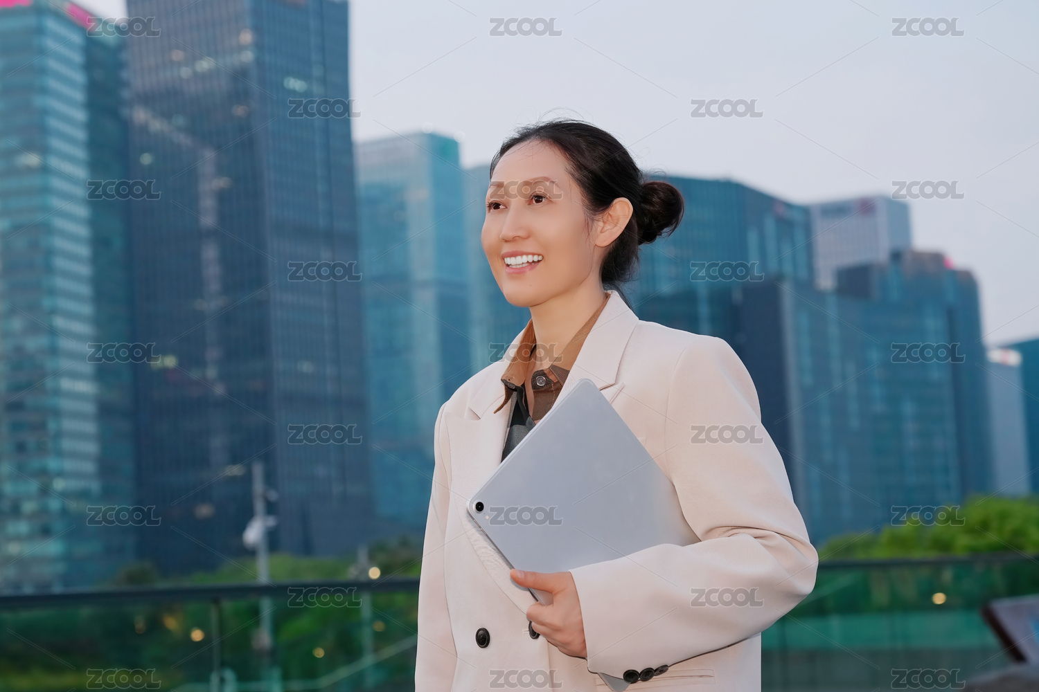 穿著商務(wù)裝的職業(yè)女性在城市中享受自然