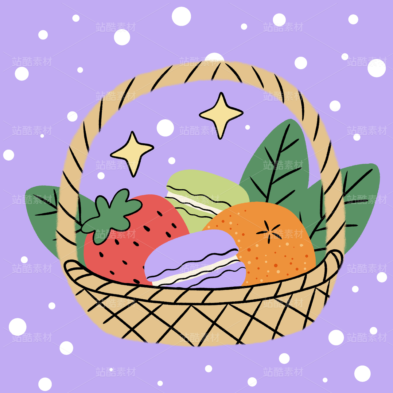 手繪水果點(diǎn)心小竹籃