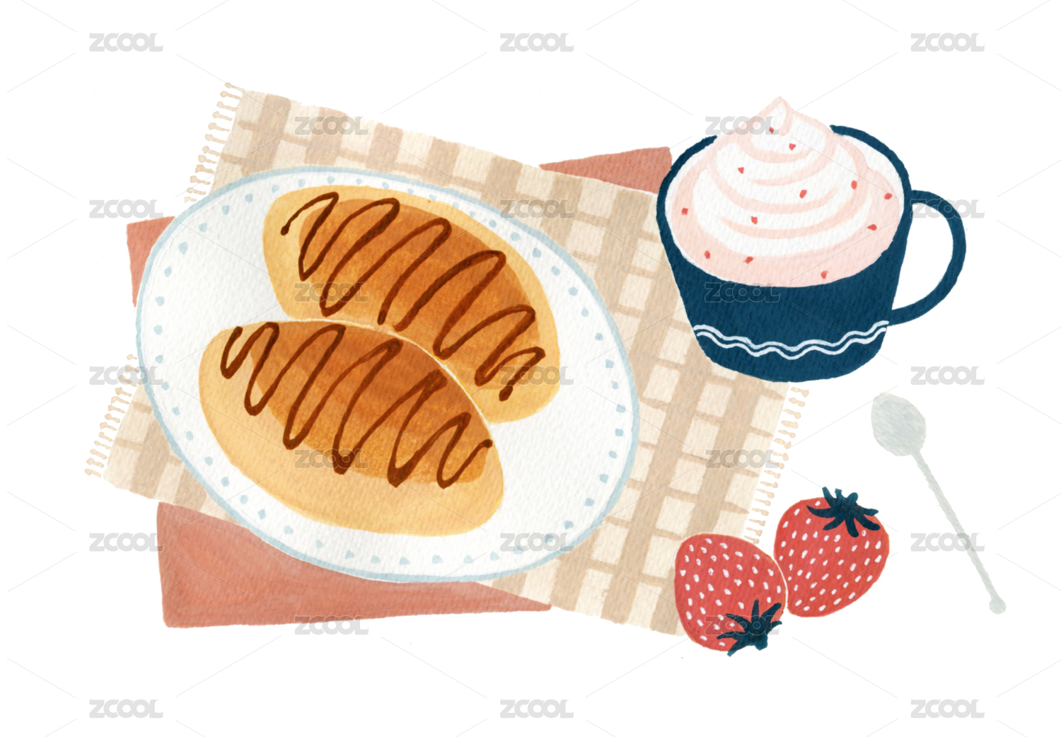手繪水彩畫(huà) 面包點(diǎn)心