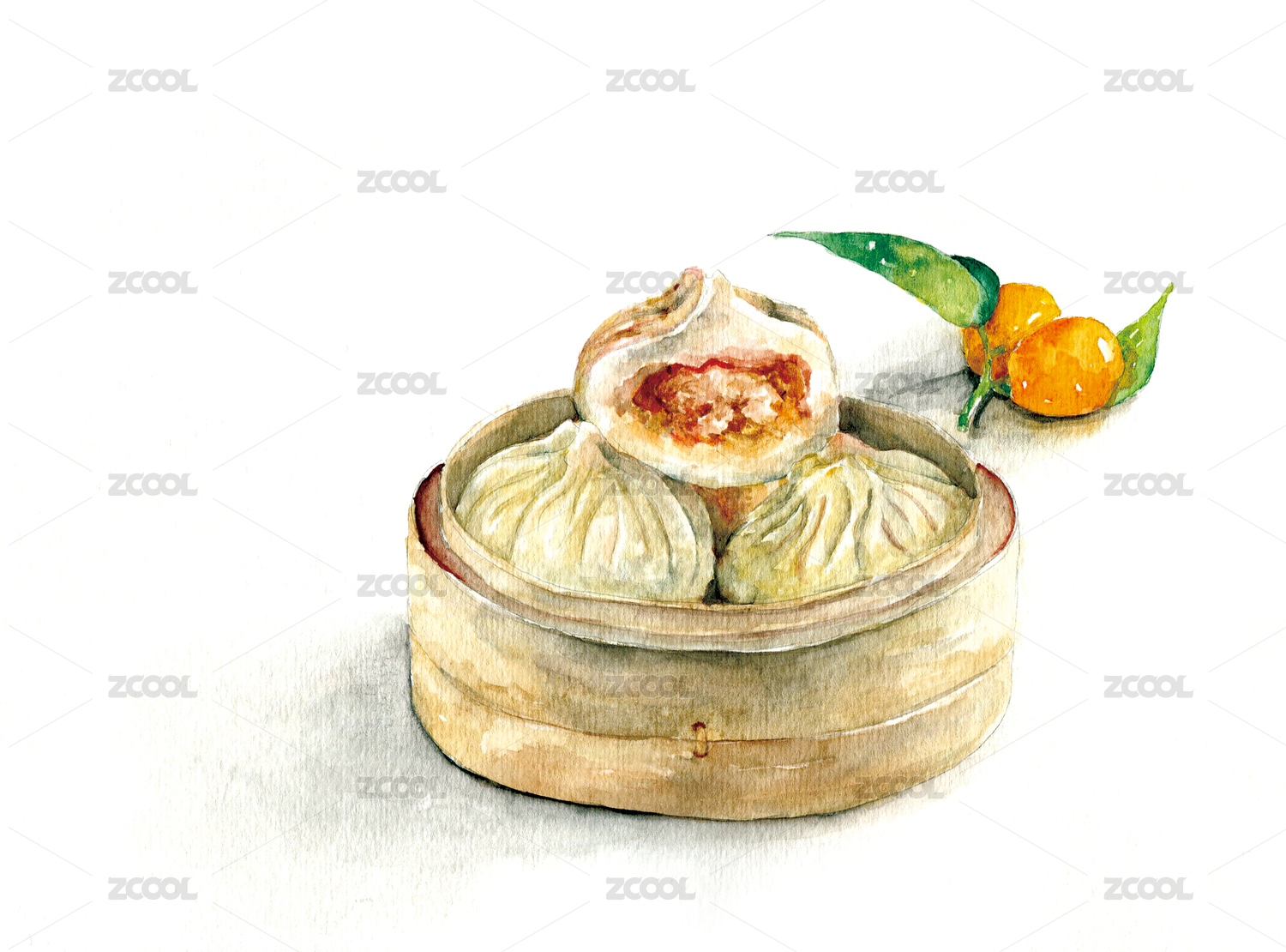 手繪美食之早茶點(diǎn)心叉燒包鮮肉包包子插畫(huà)