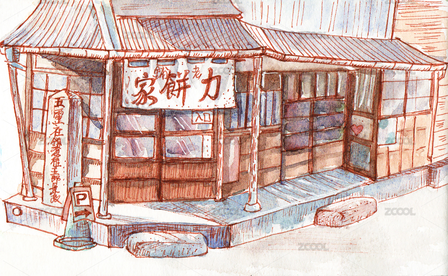手繪水彩 日本點(diǎn)心店 和菓子店