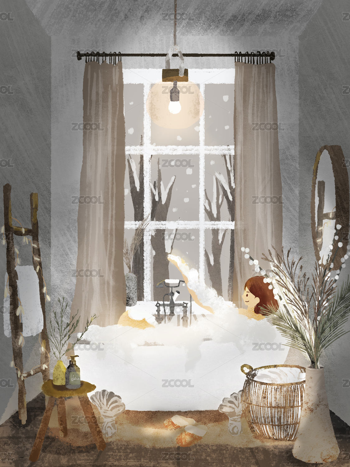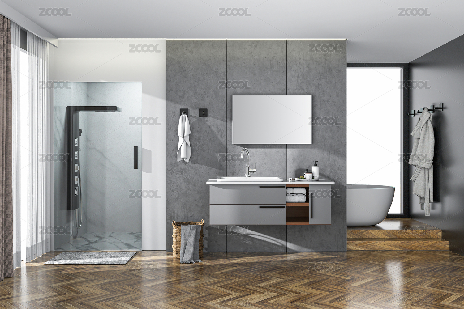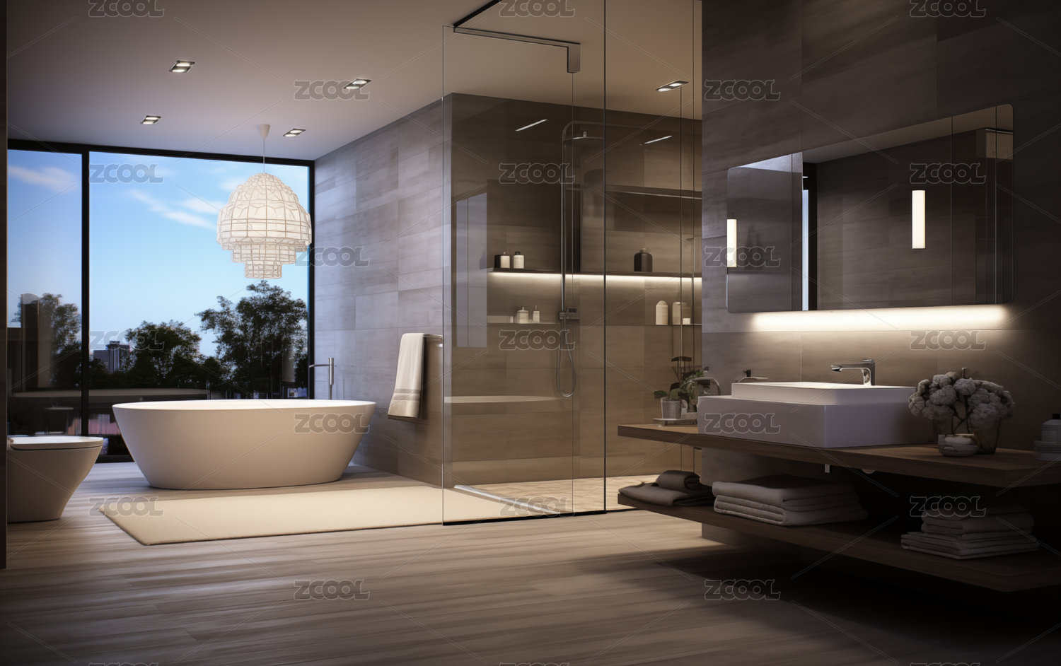 帶熱水器現(xiàn)代浴室裝飾方案室內(nèi)設(shè)計插圖