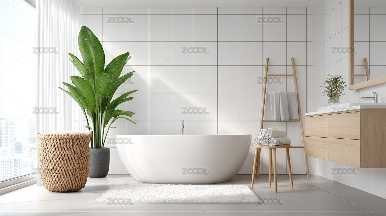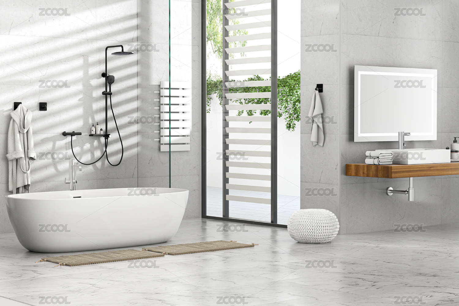 現(xiàn)代風格時尚浴缸浴室內(nèi)部白色現(xiàn)代浴缸背景