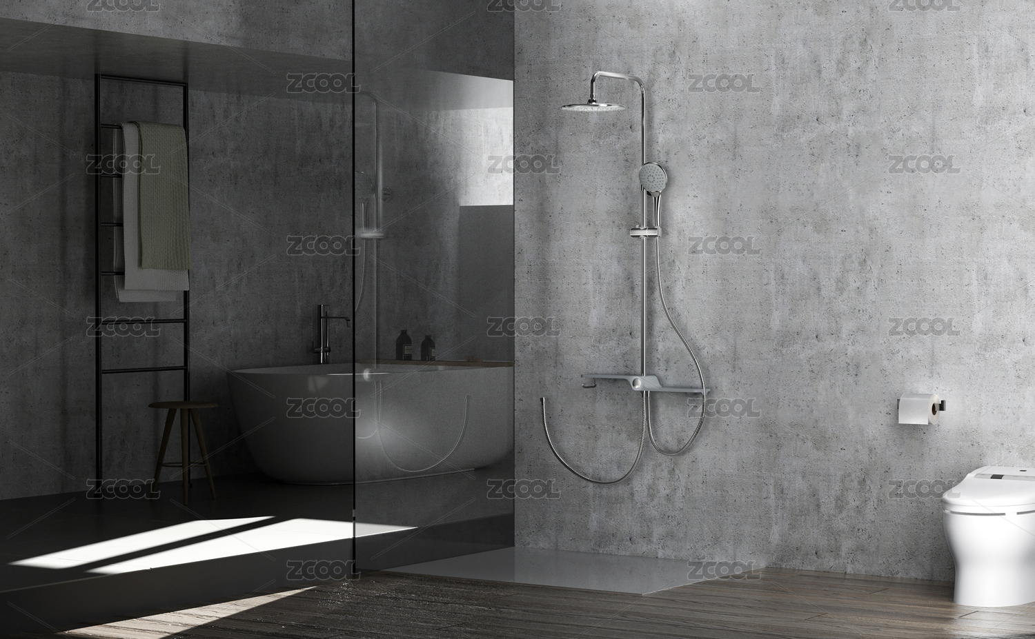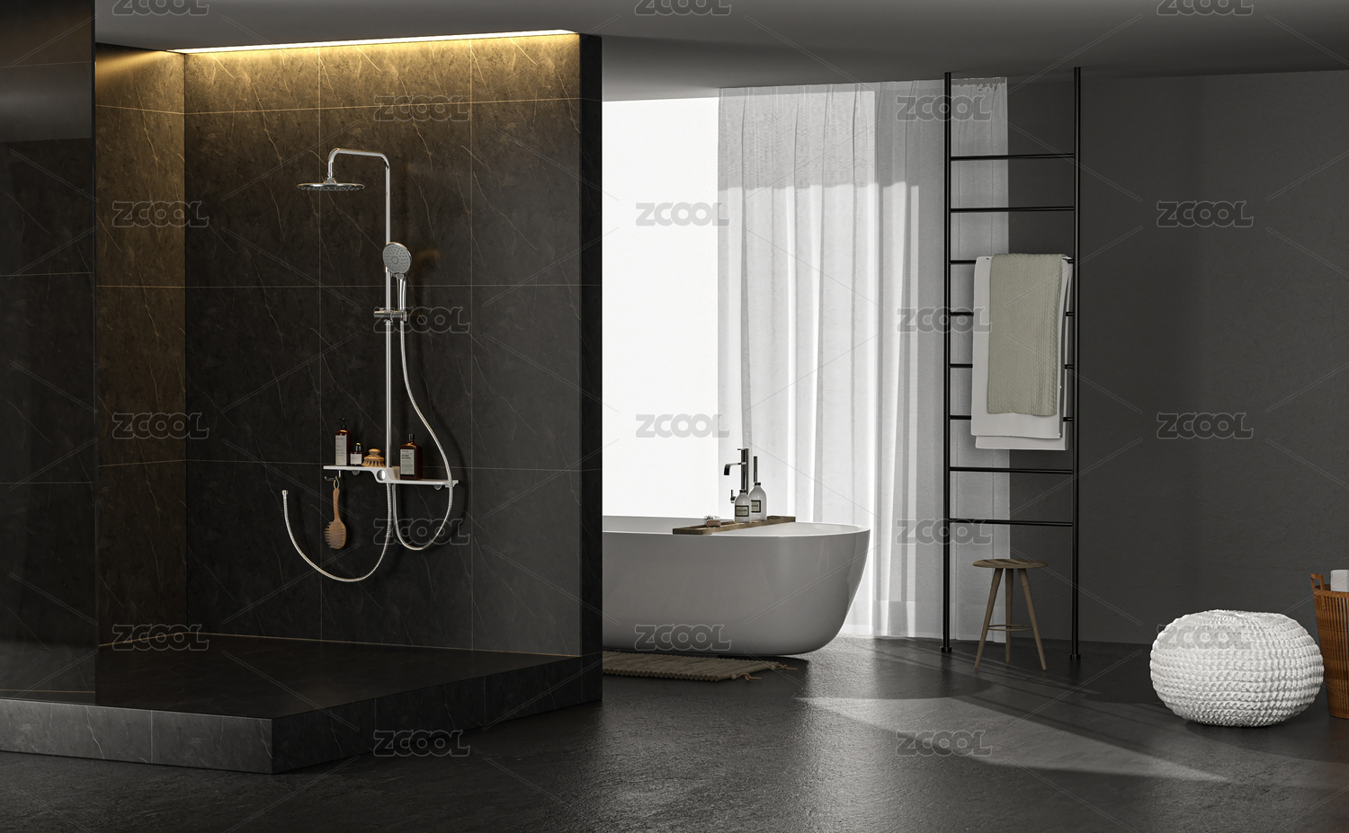 3D場景渲染 浴室水龍頭淋浴花灑場景圖