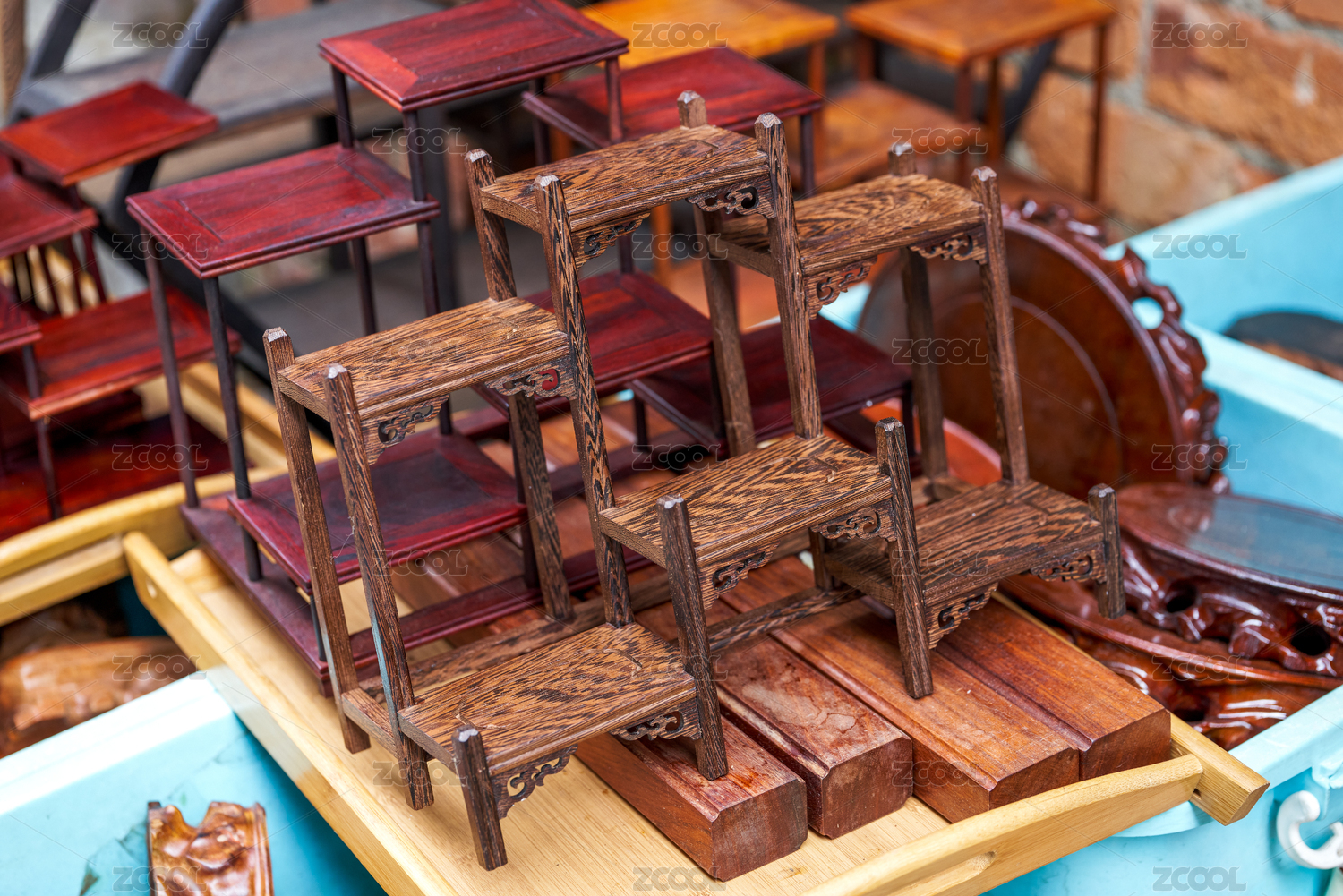 市場上售賣的紅木置物架特寫