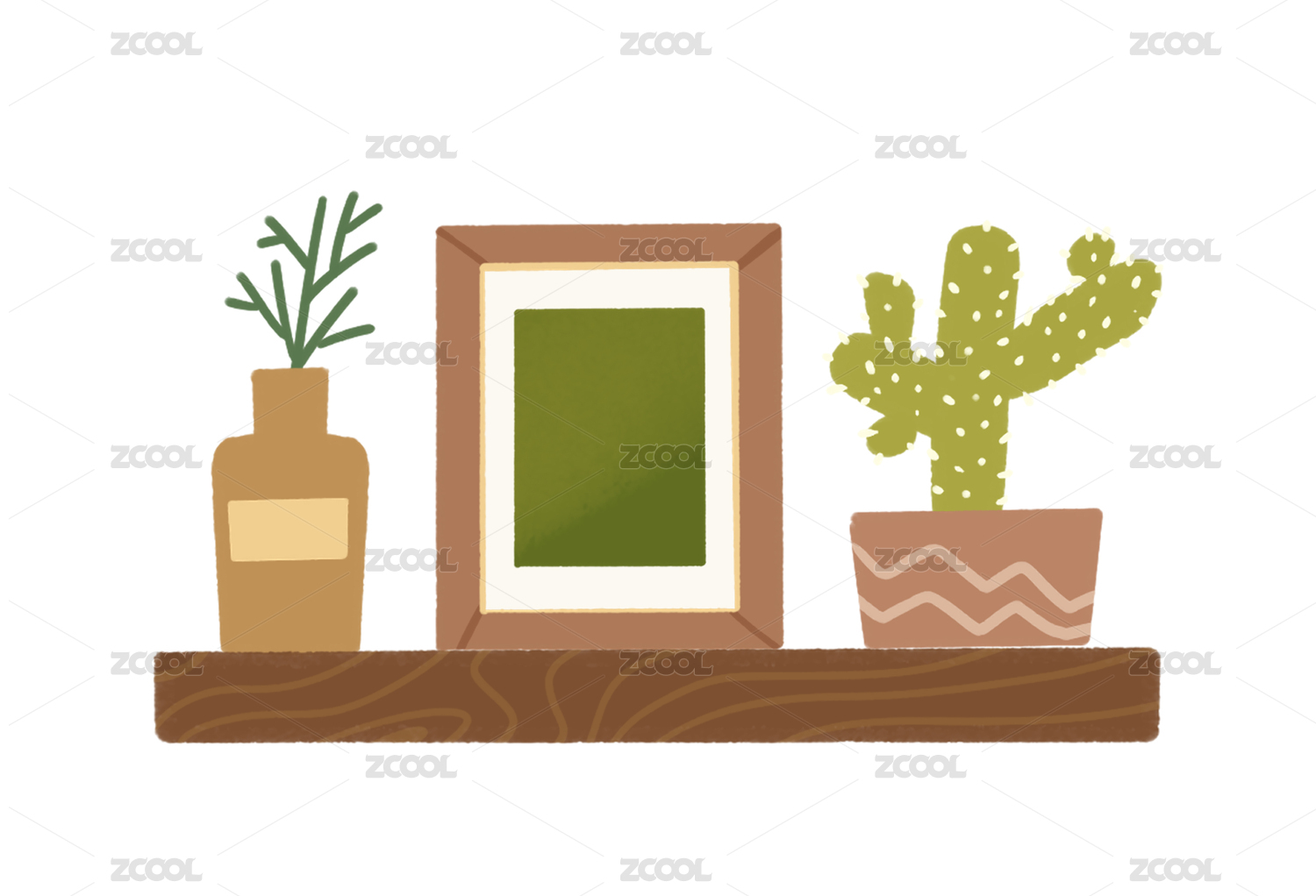 墻上置物架相框仙人掌裝飾元素插畫