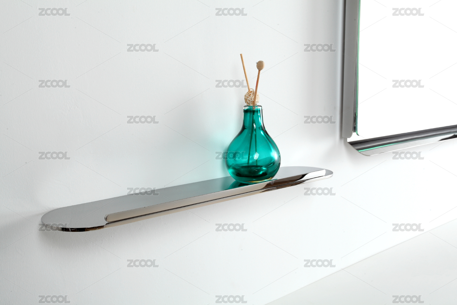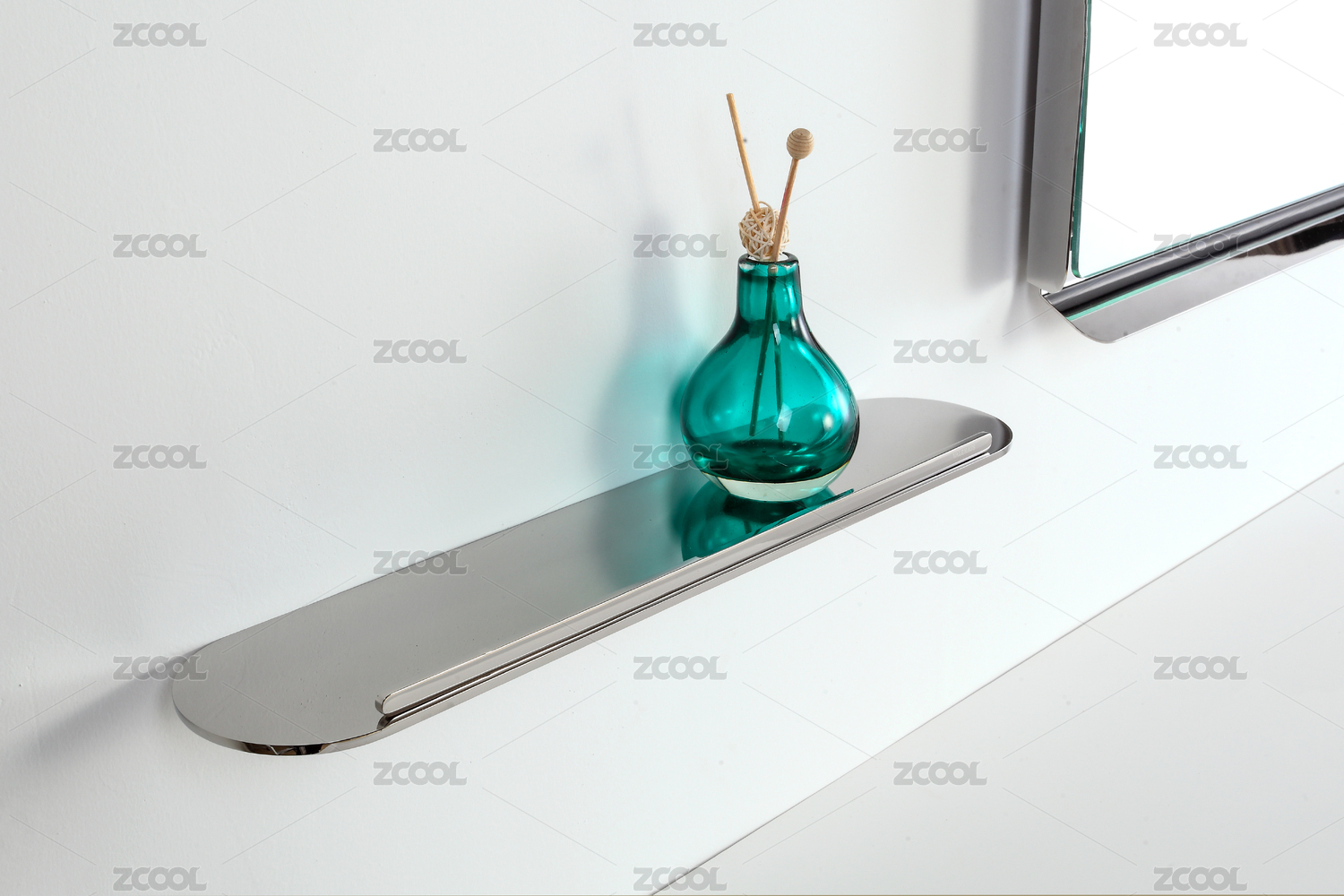 懸掛在白色墻壁上的不銹鋼浴室置物架