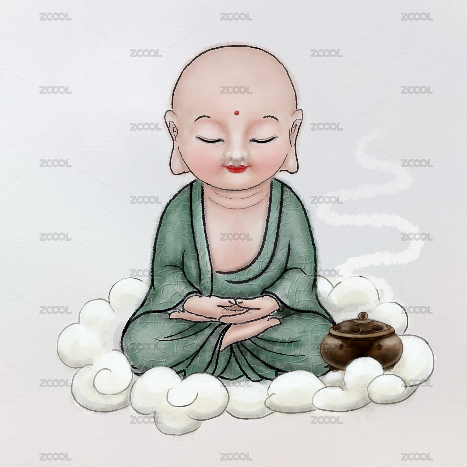 進(jìn)入禪定的禪意小和尚