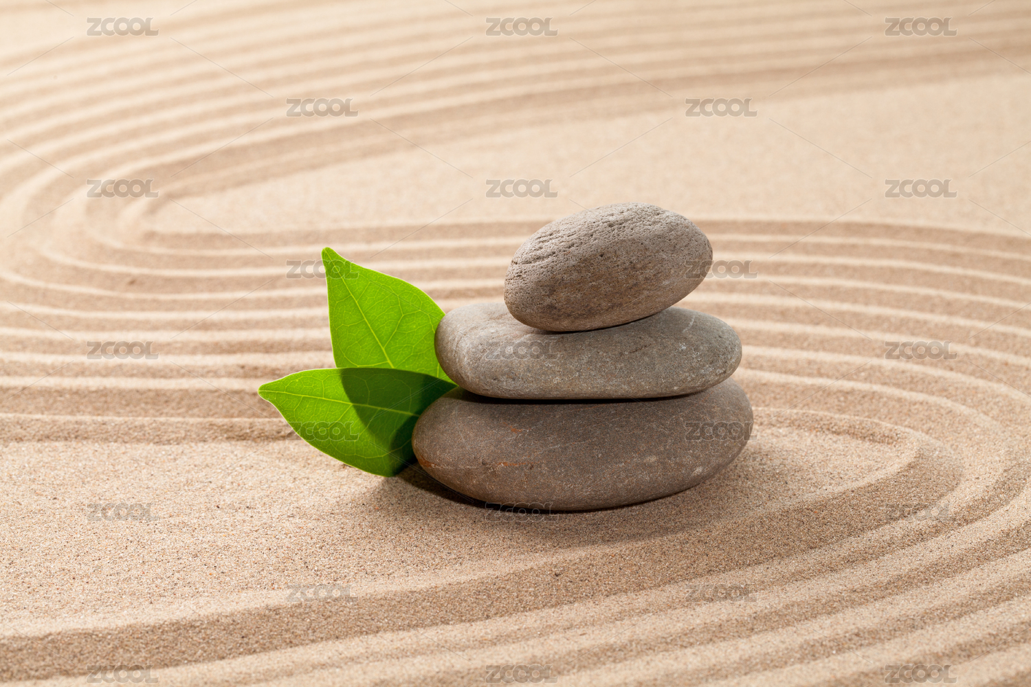 沙子綠葉和石頭的禪概念