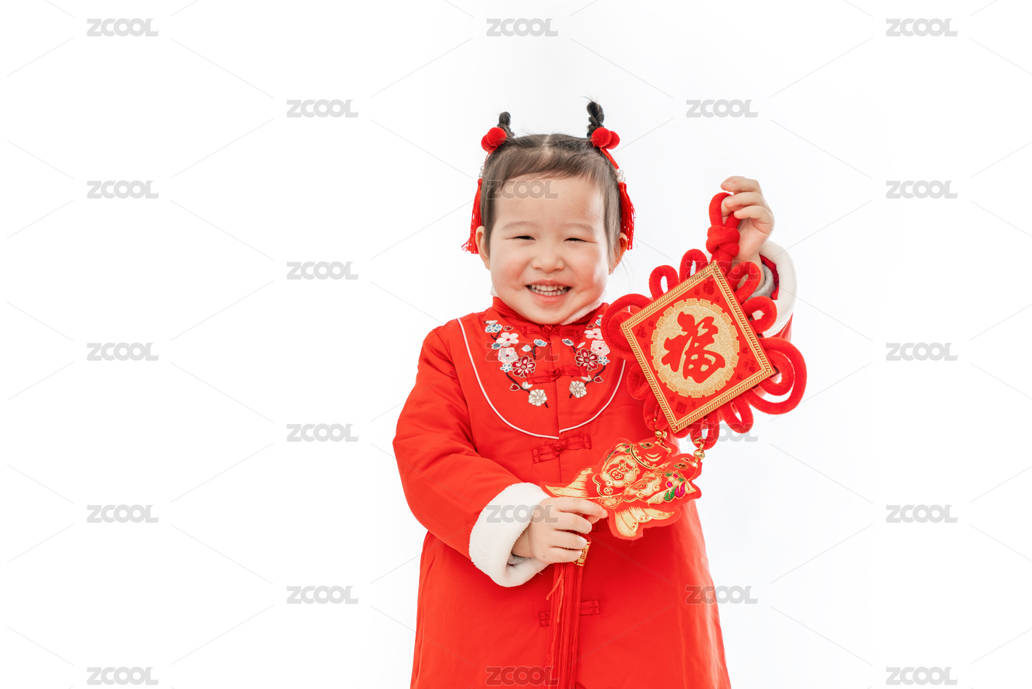 小女孩穿著紅棉襖手里拿著中國結(jié)