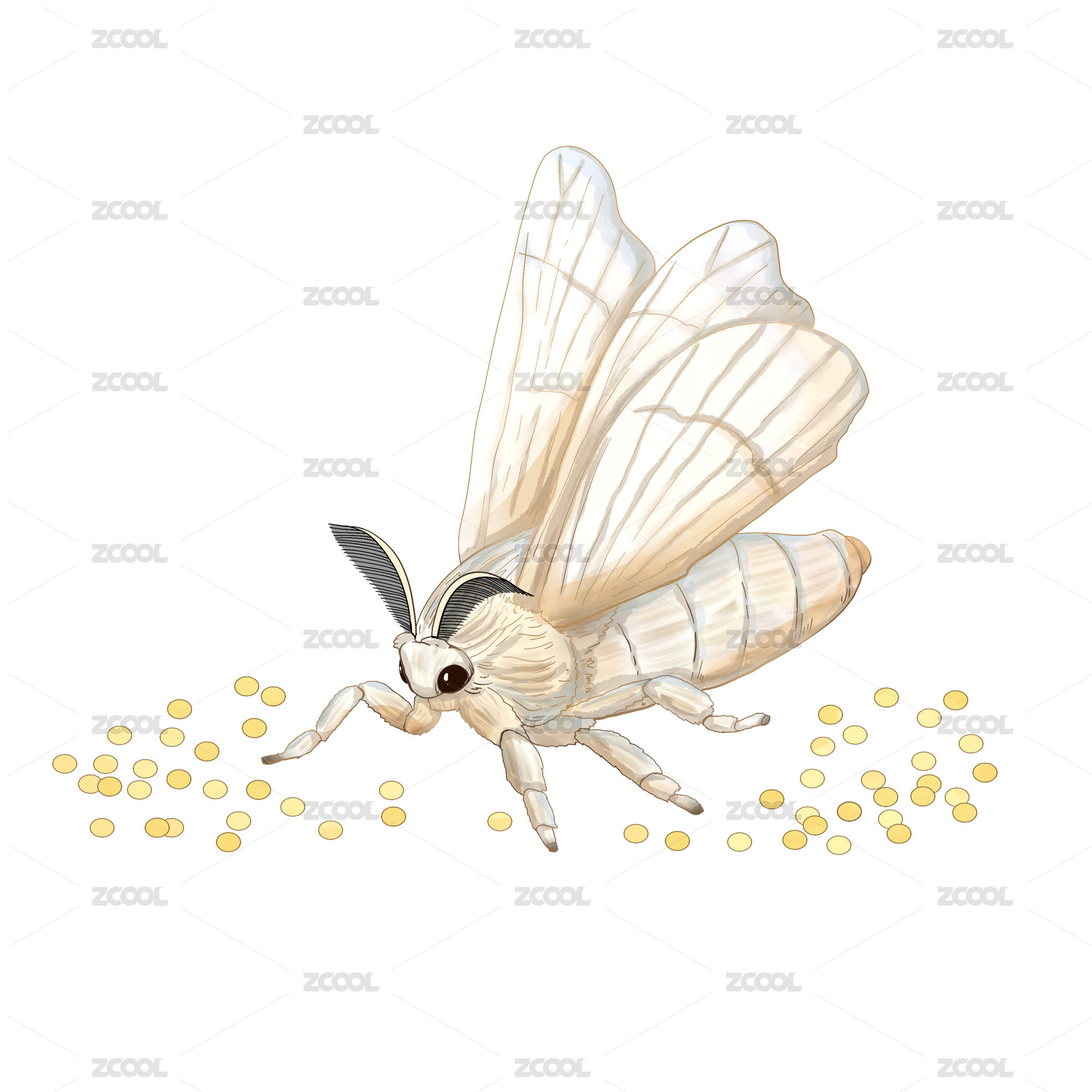 手繪水彩昆蟲蠶蛾產(chǎn)卵插畫