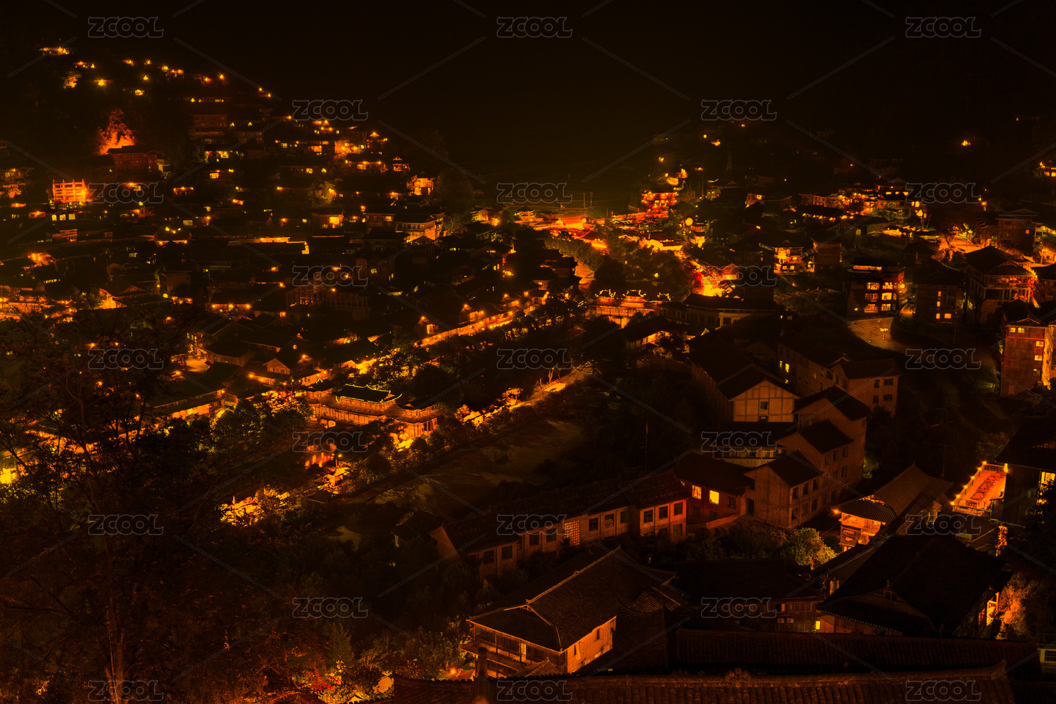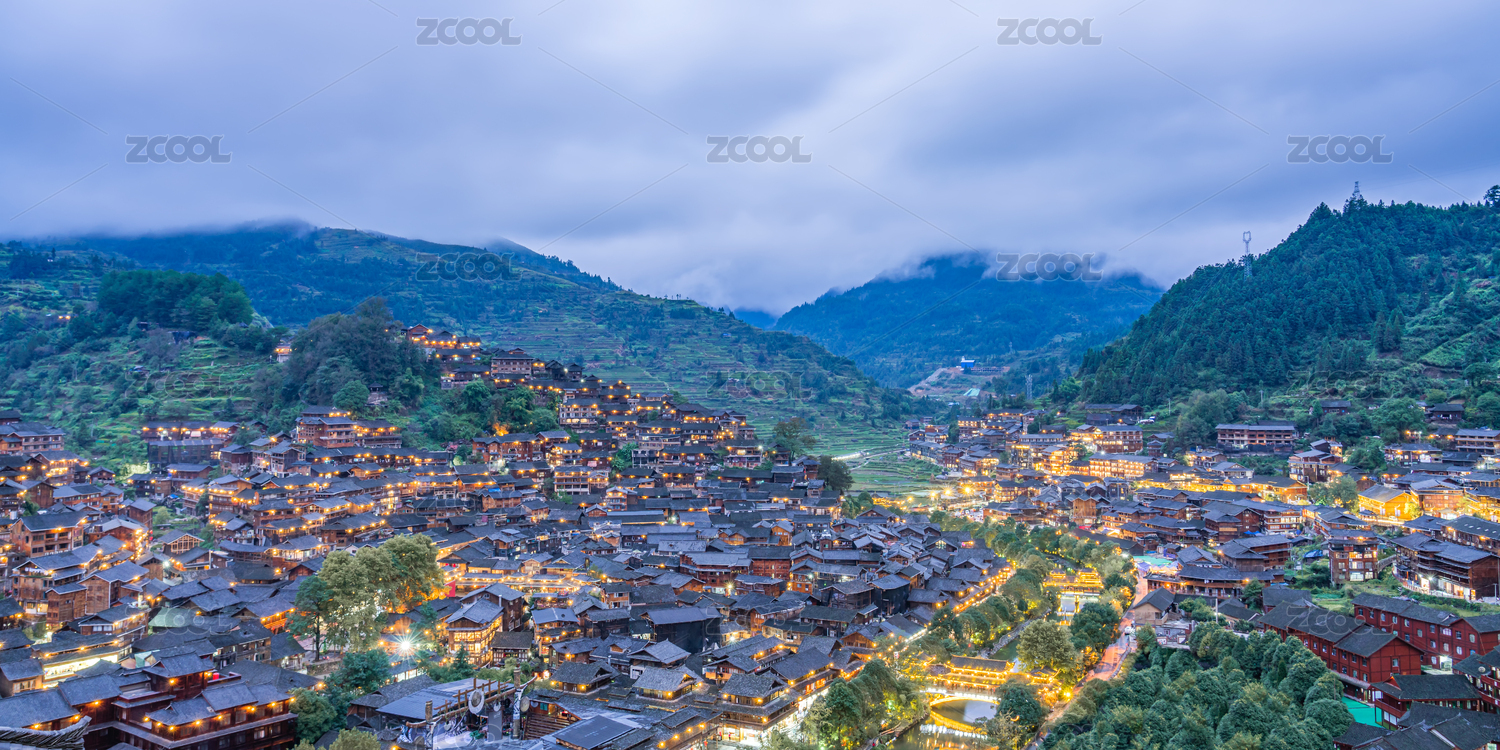 中國貴州凱里西江千戶苗寨高視角夜景風光