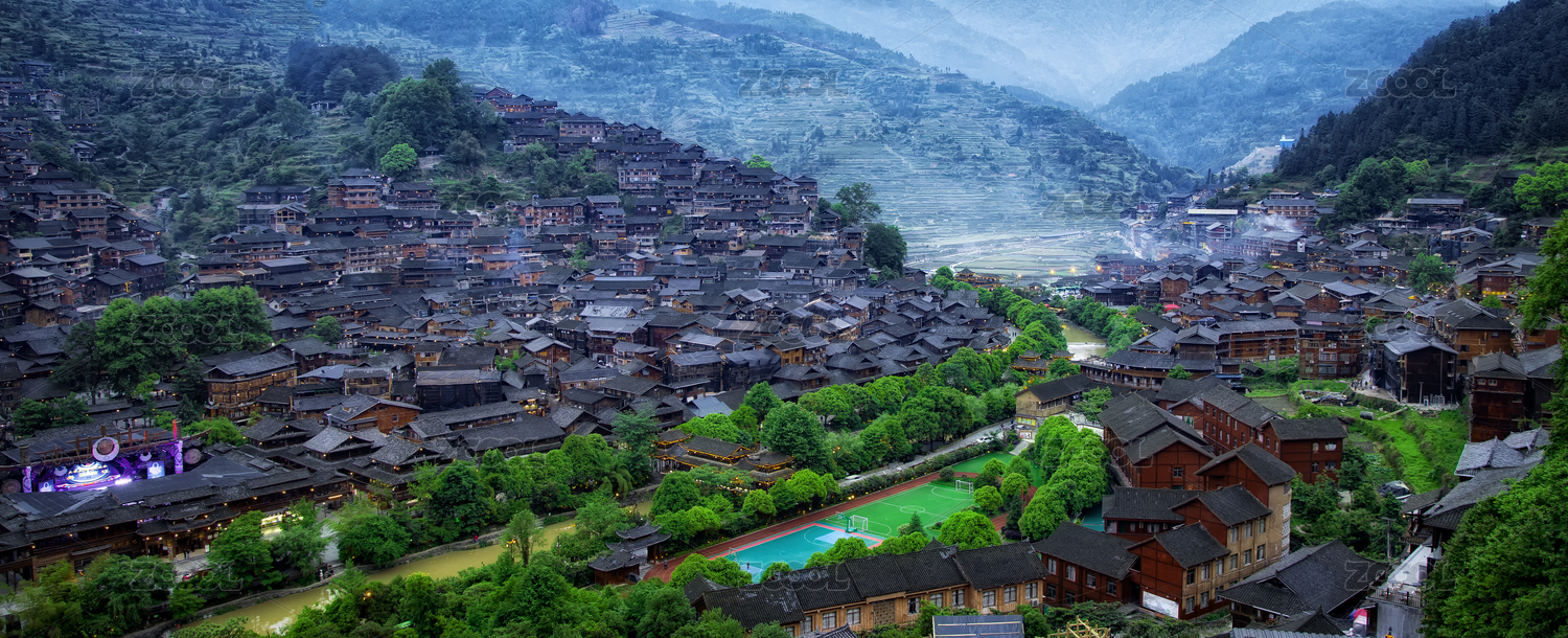 中國貴州黔東南西江千戶苗寨寧靜的清晨
