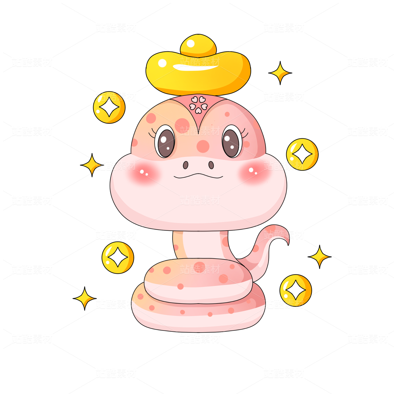 卡通蛇年春節(jié)粉色元寶喜慶可愛