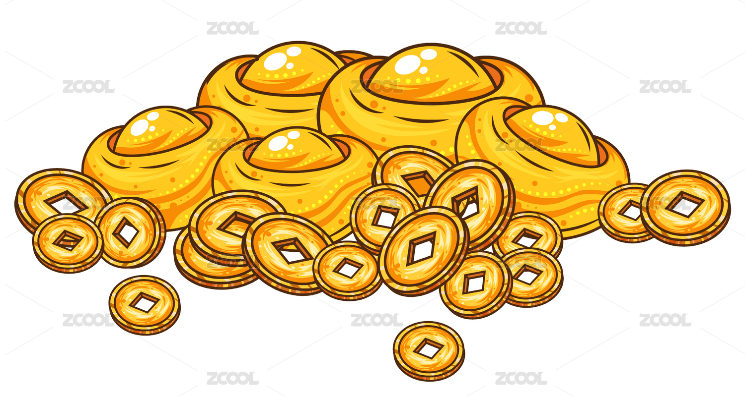 矢量金幣元寶財富寶藏插畫
