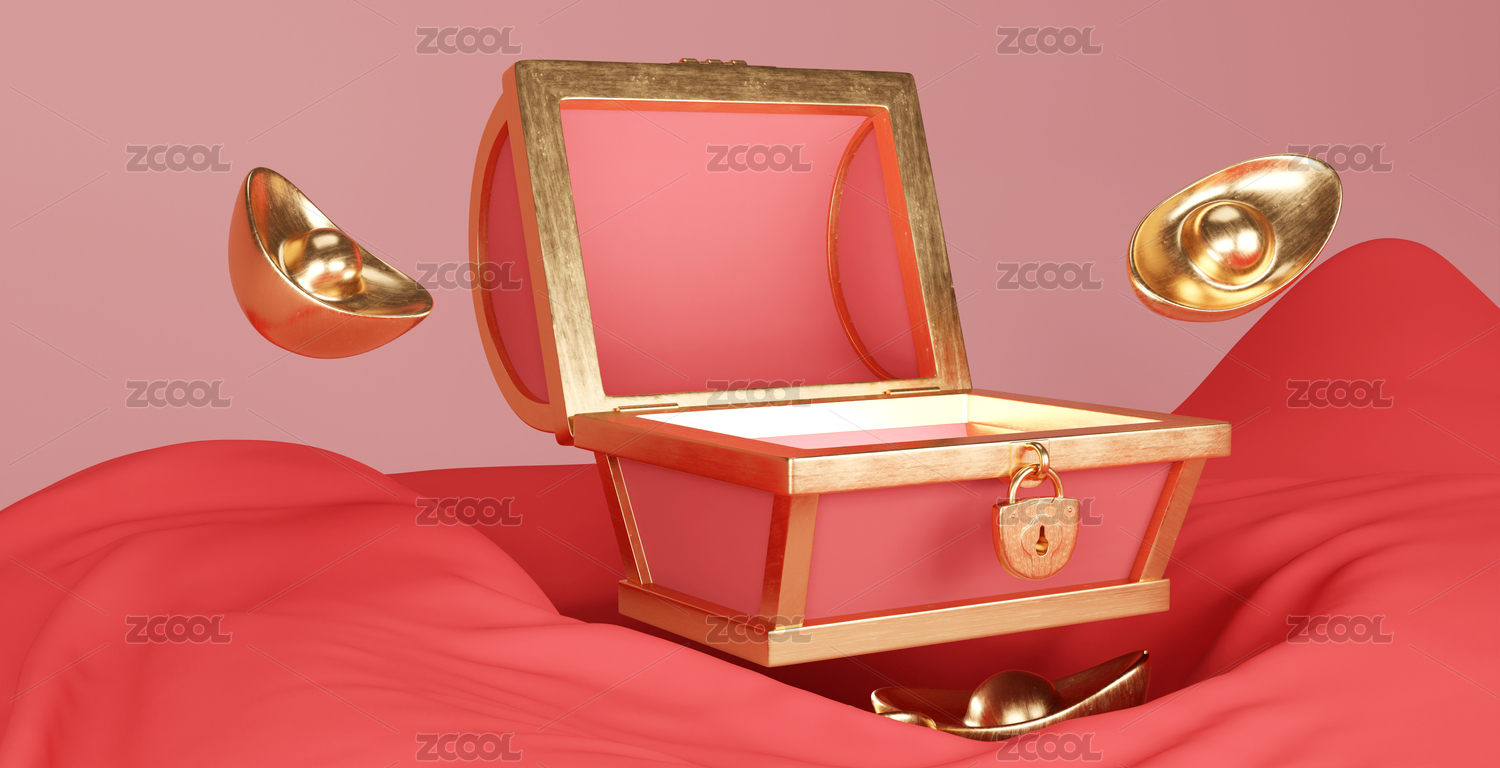 紅色布紋上的財富元寶寶箱