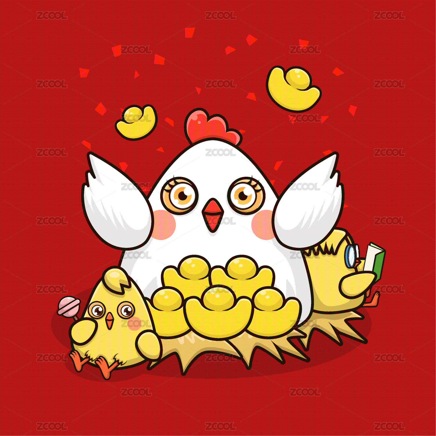 雞媽媽和雞寶寶送元寶