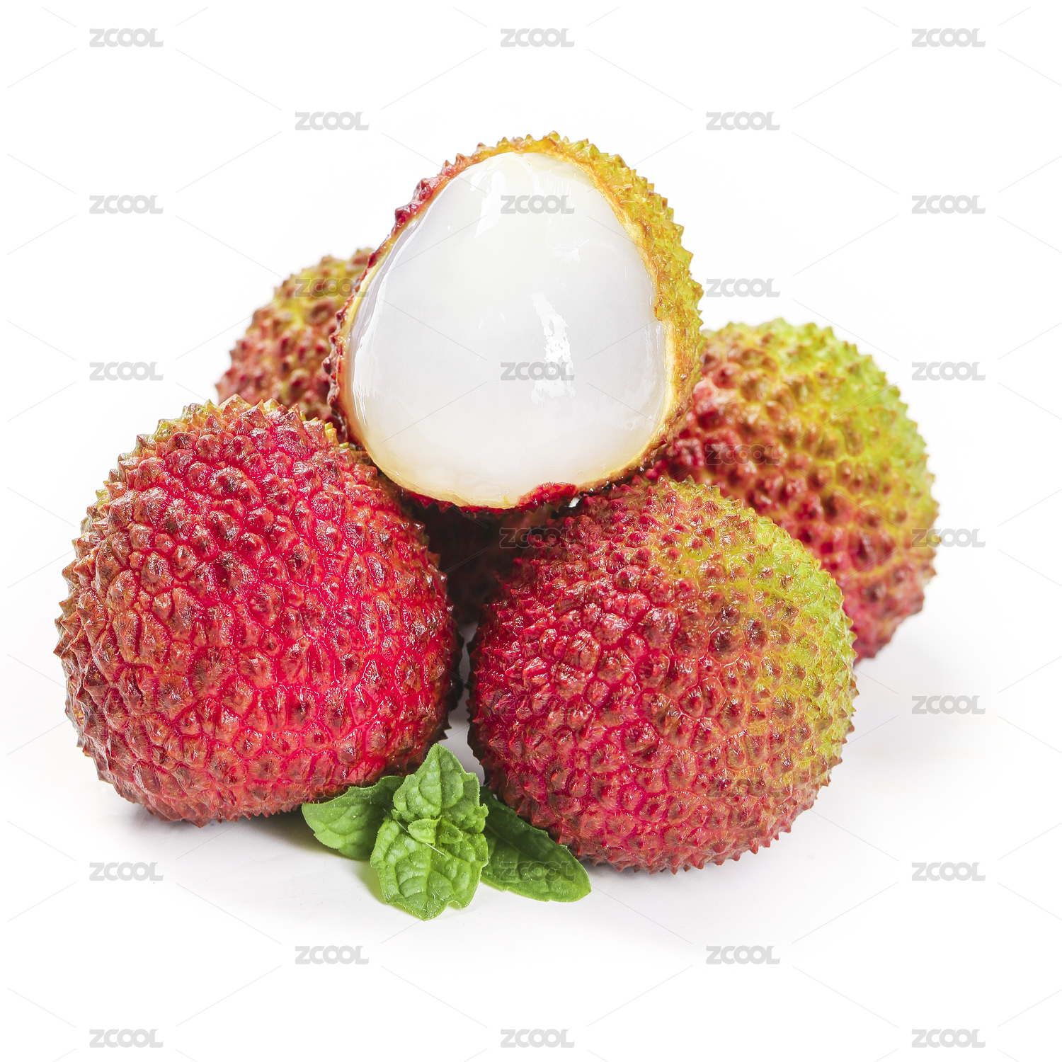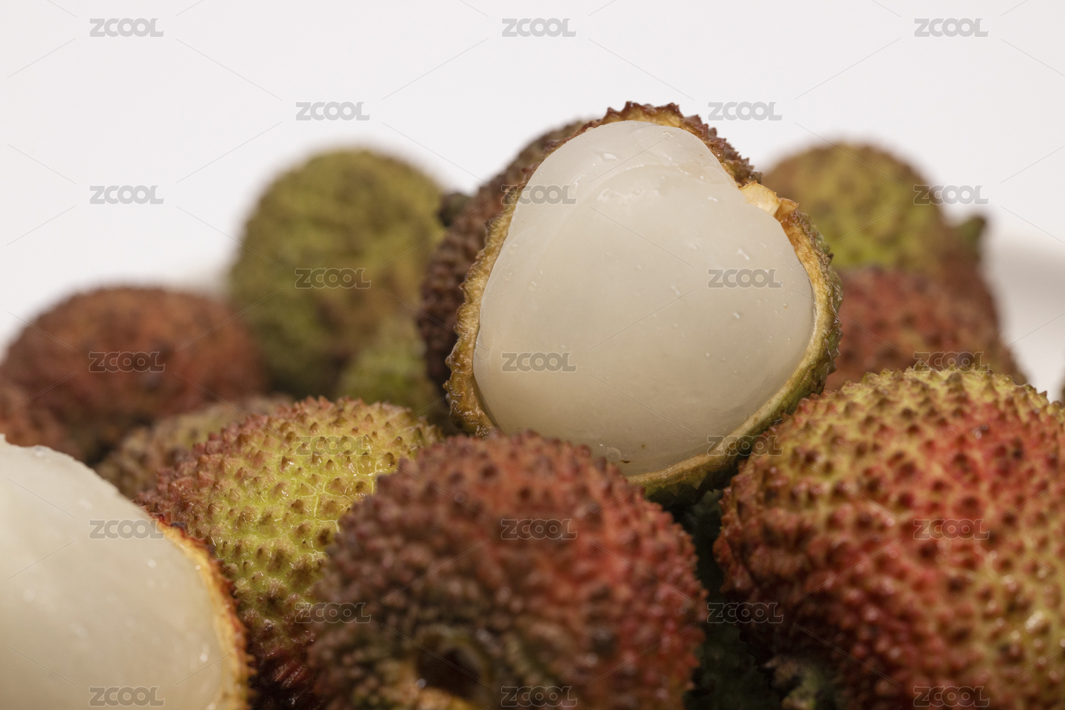 新鮮的妃子笑荔枝孤立在白色背景上