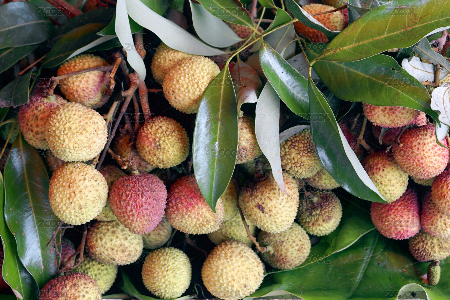 黑底上放著一堆新鮮妃子笑