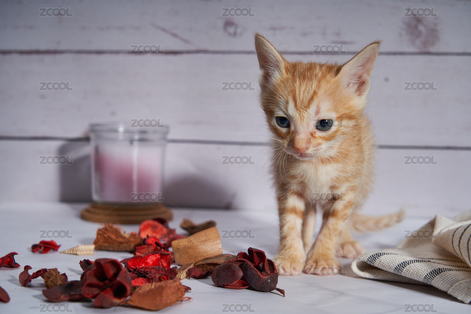 溫馨的場景下一只可愛的小橘貓幼貓?zhí)貙?/div>
