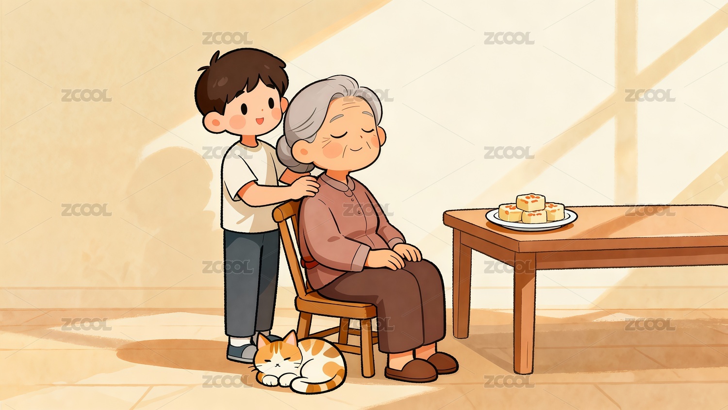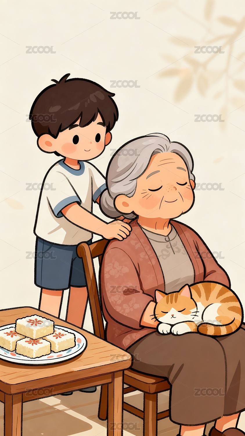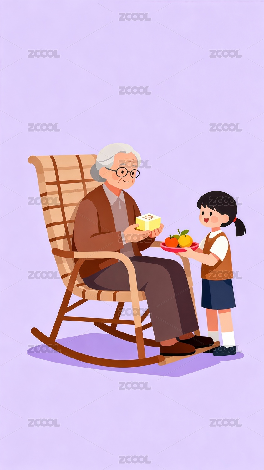 重陽節(jié)祖孫溫馨互動手繪插畫
