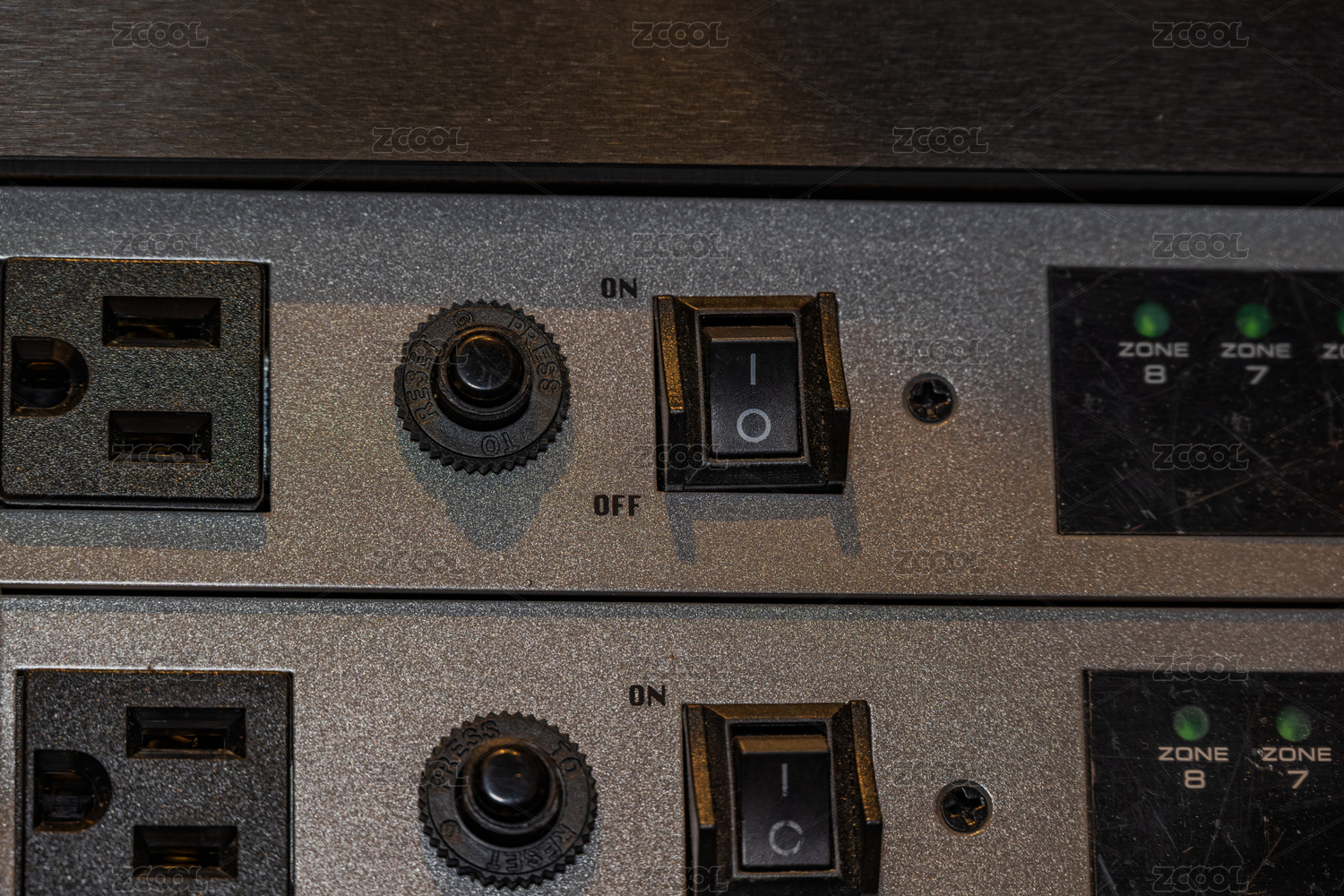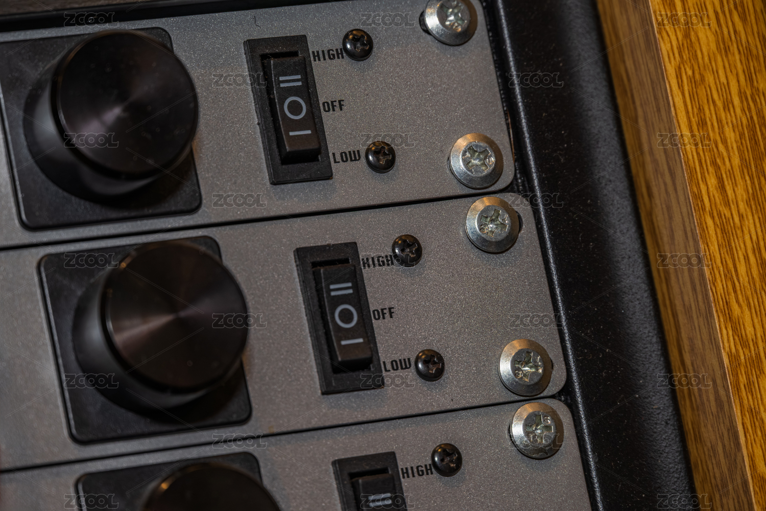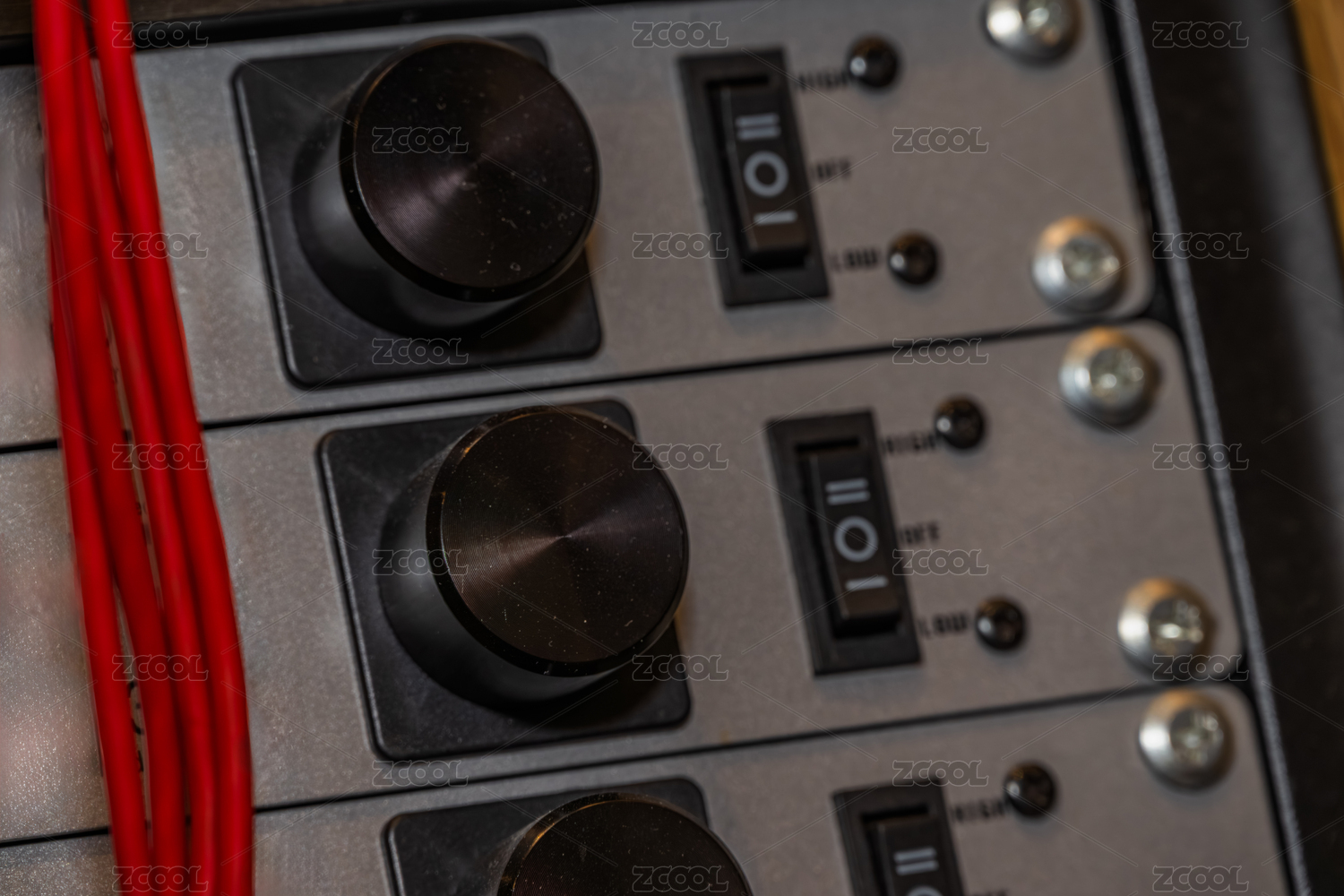 音頻調音臺的特寫鏡頭顯示通道控制和指示燈