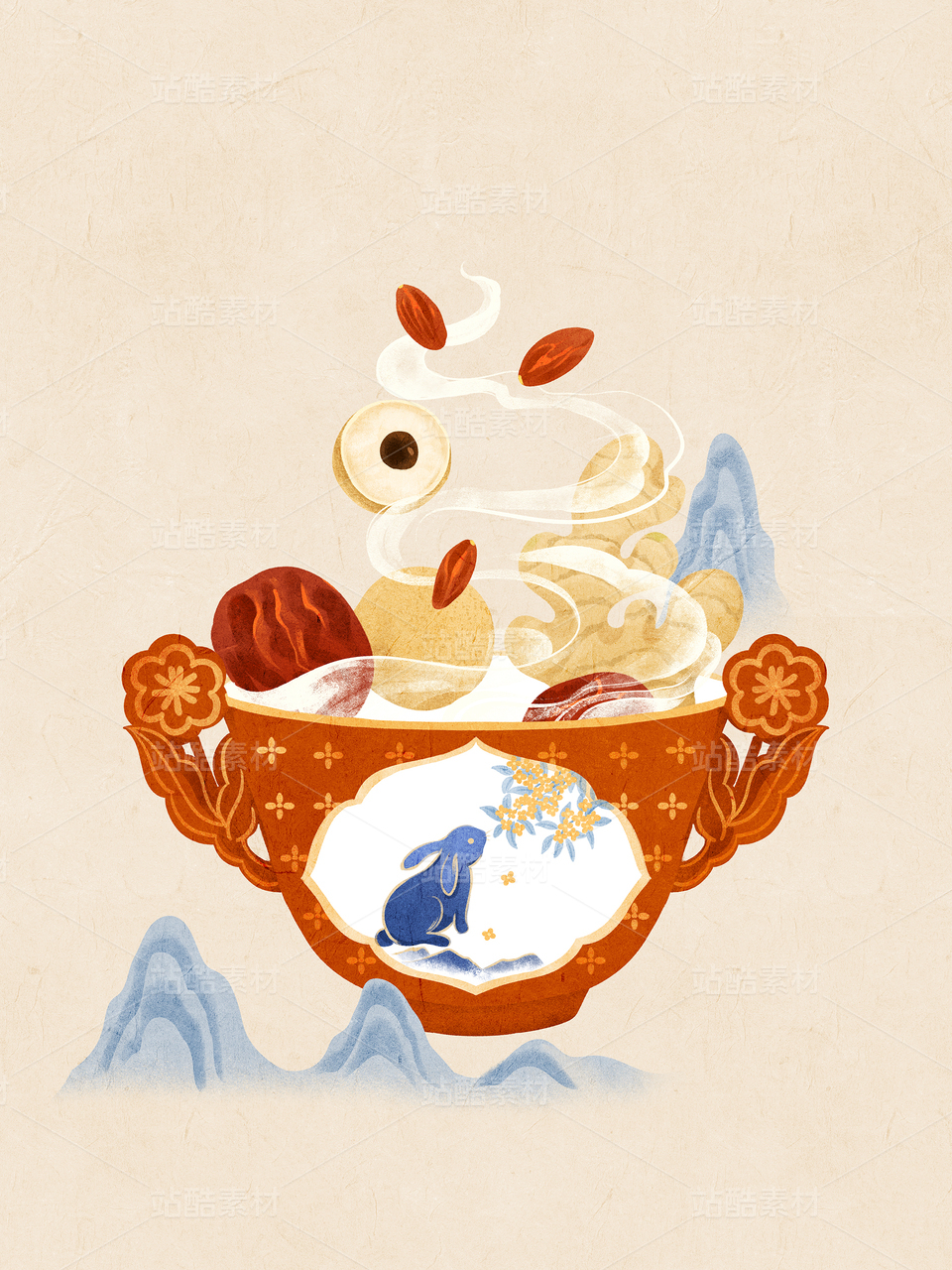 姜棗茶桂圓紅棗枸杞茶杯國風(fēng)插畫