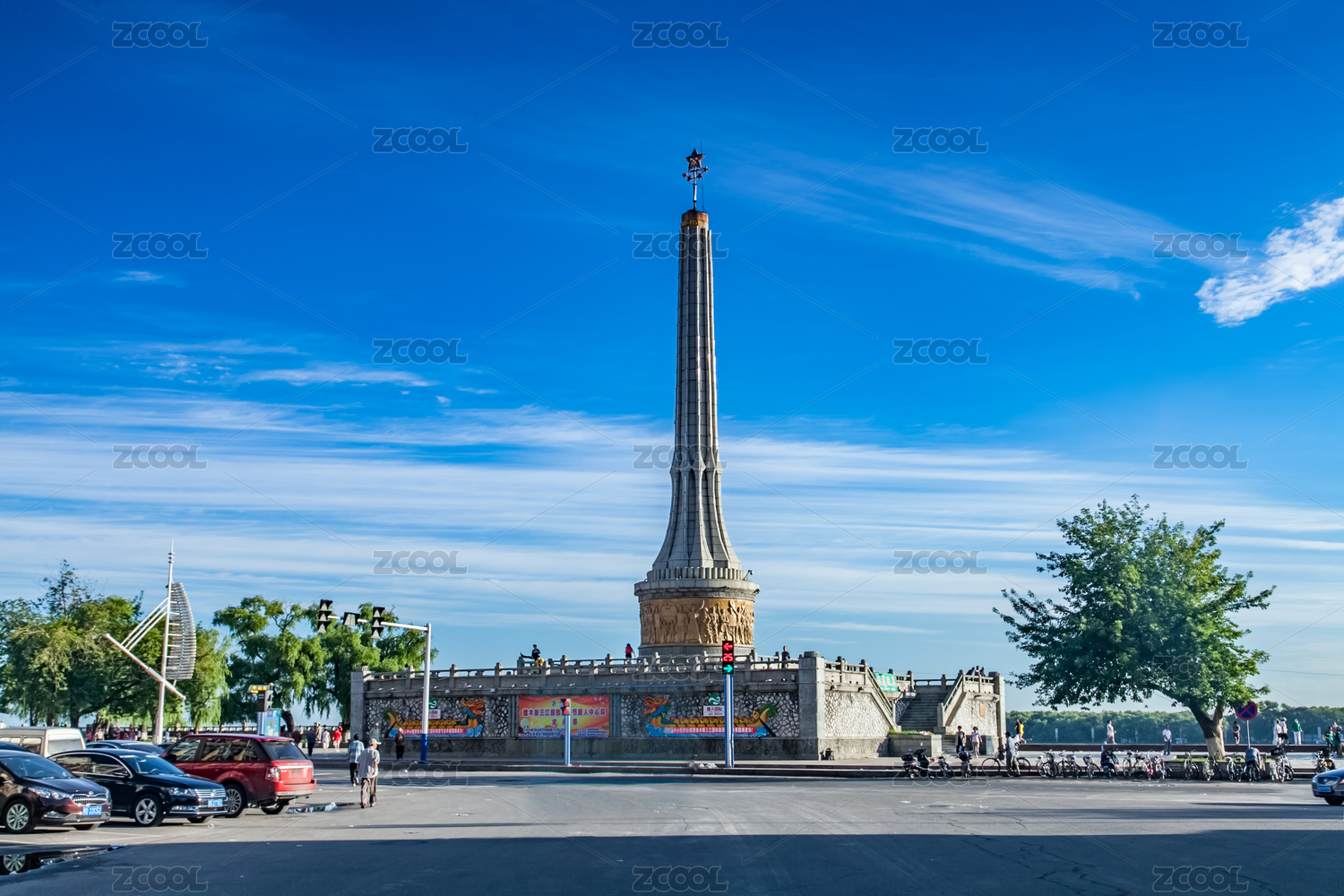 中國黑龍江省哈爾濱市防洪紀(jì)念塔風(fēng)光